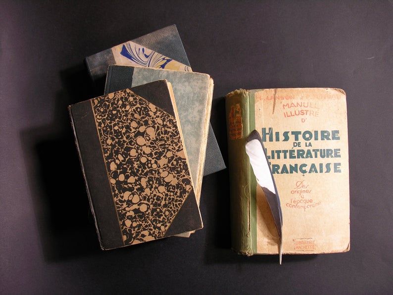 Lot de 4 livres anciens Français pour une décoration rétro façon cabinet de curiosités