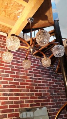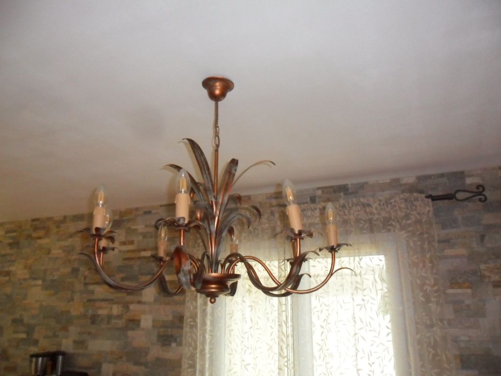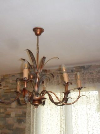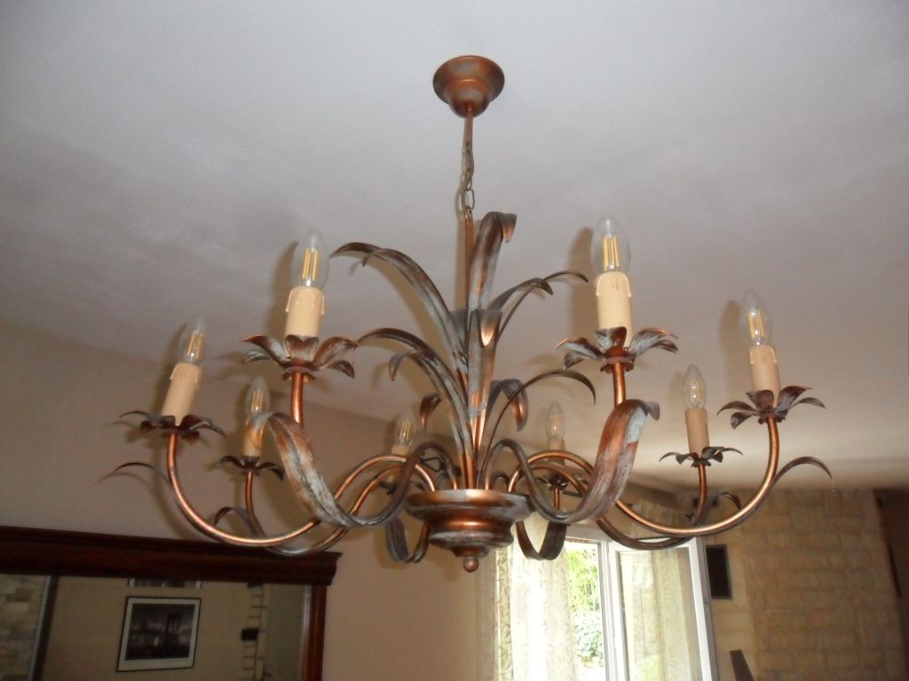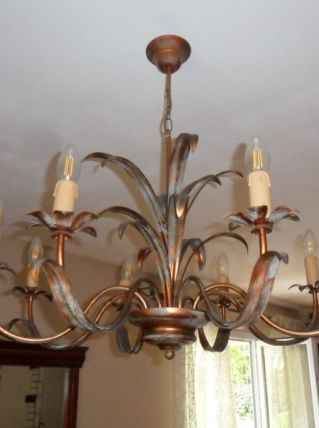 Lustre séjour KERIA 8 lampes modèle Bernay couleur rouille/vert (douille E14)