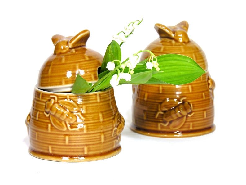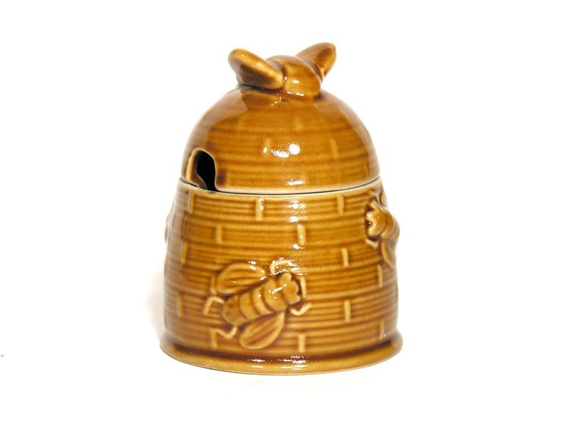 Petit Pot à Miel en céramique 1980 / Décor Ruche