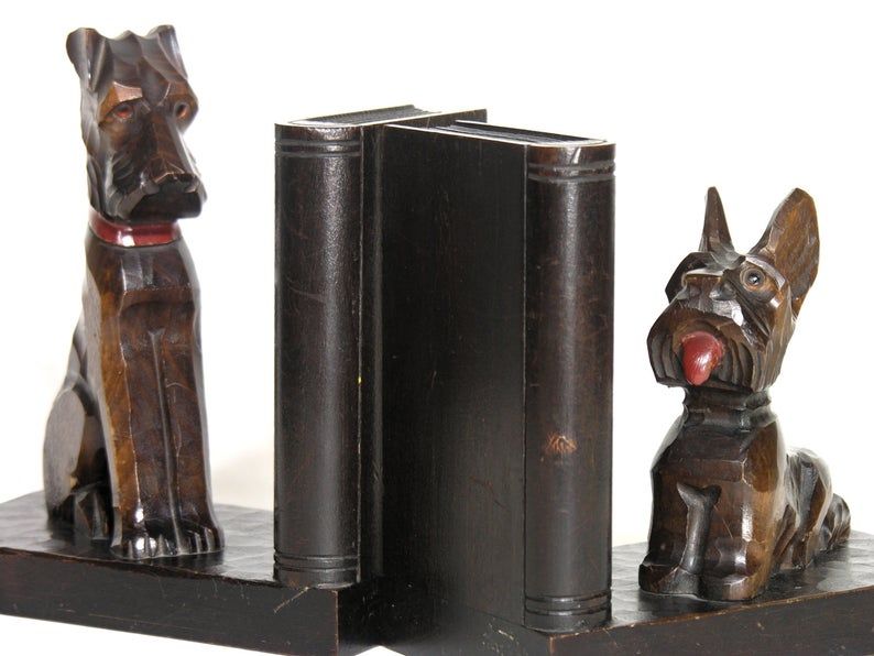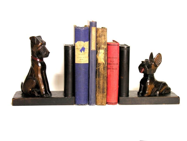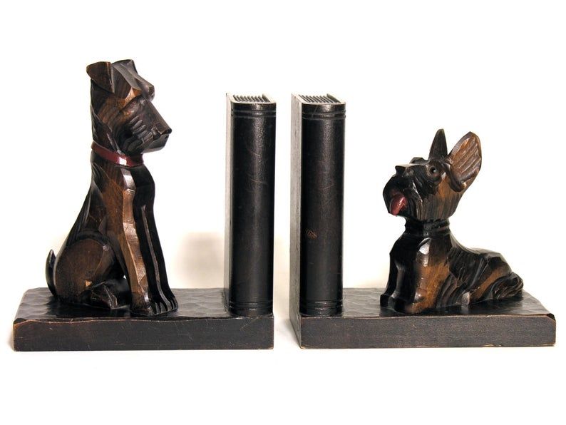 Serre Livres Chiens Bois Rétro 1960 / Serre-Livres Vintage
