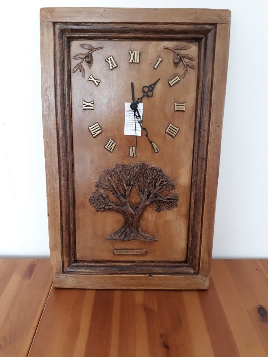 Une horloge neuve d'origine peinte à la main. En plâtre et fonctionne à pile. Olivier en relief véritable objet déco.horloge de table ira dans votre salon couloir ou encore à la table de votre cuisine. Avec son certificat d'authenticité très beau cadeau (lourde et de qualité)