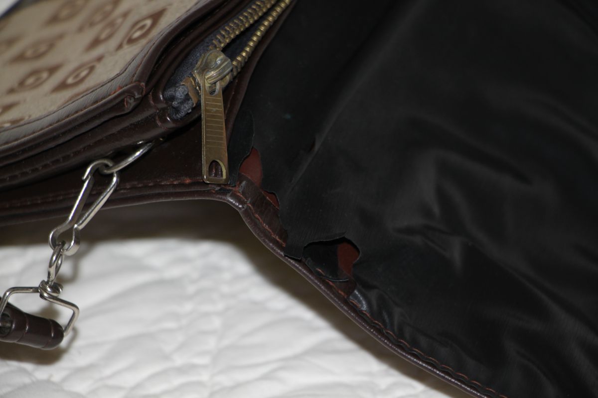 Sac pochette similicuir et face tissus imperméabilisé. Dimensions: h20X 30 cm. Plat avec trois soufflets intérieurs dont un avec fermeture éclair. Bandoulière amovible.