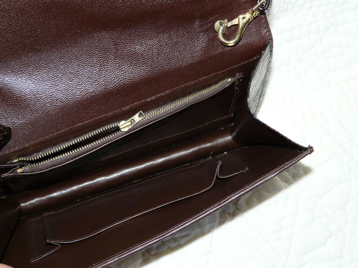Intérieur simili cuir marron / un compartiment avec 2 poches dont une zippée.