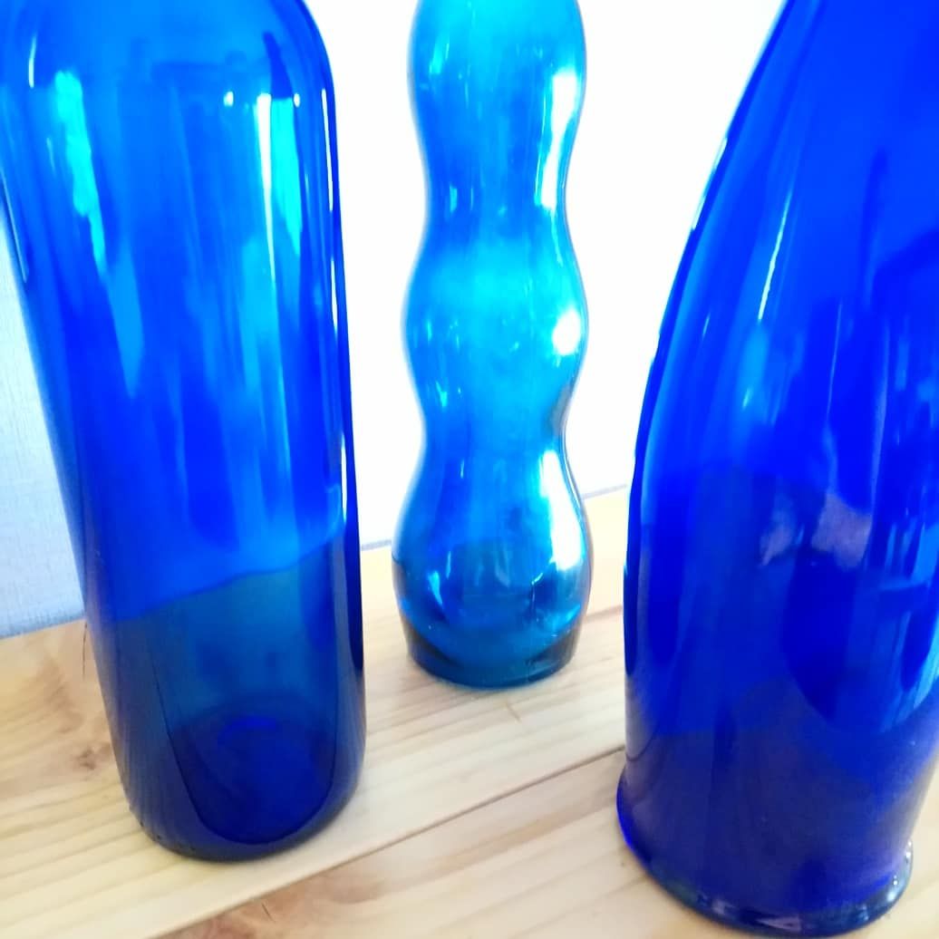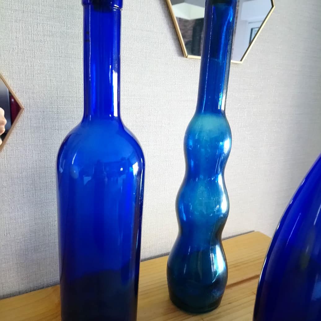 Lot de 3 jolies bouteilles bleues
