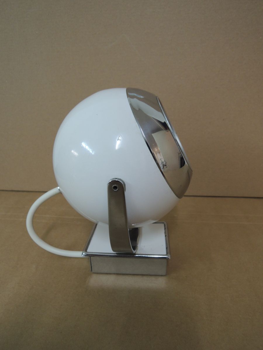 Applique vintage blanc et chrome Eye Ball, en bon état, chrome intact, douille à vis E14, électricité révisée,