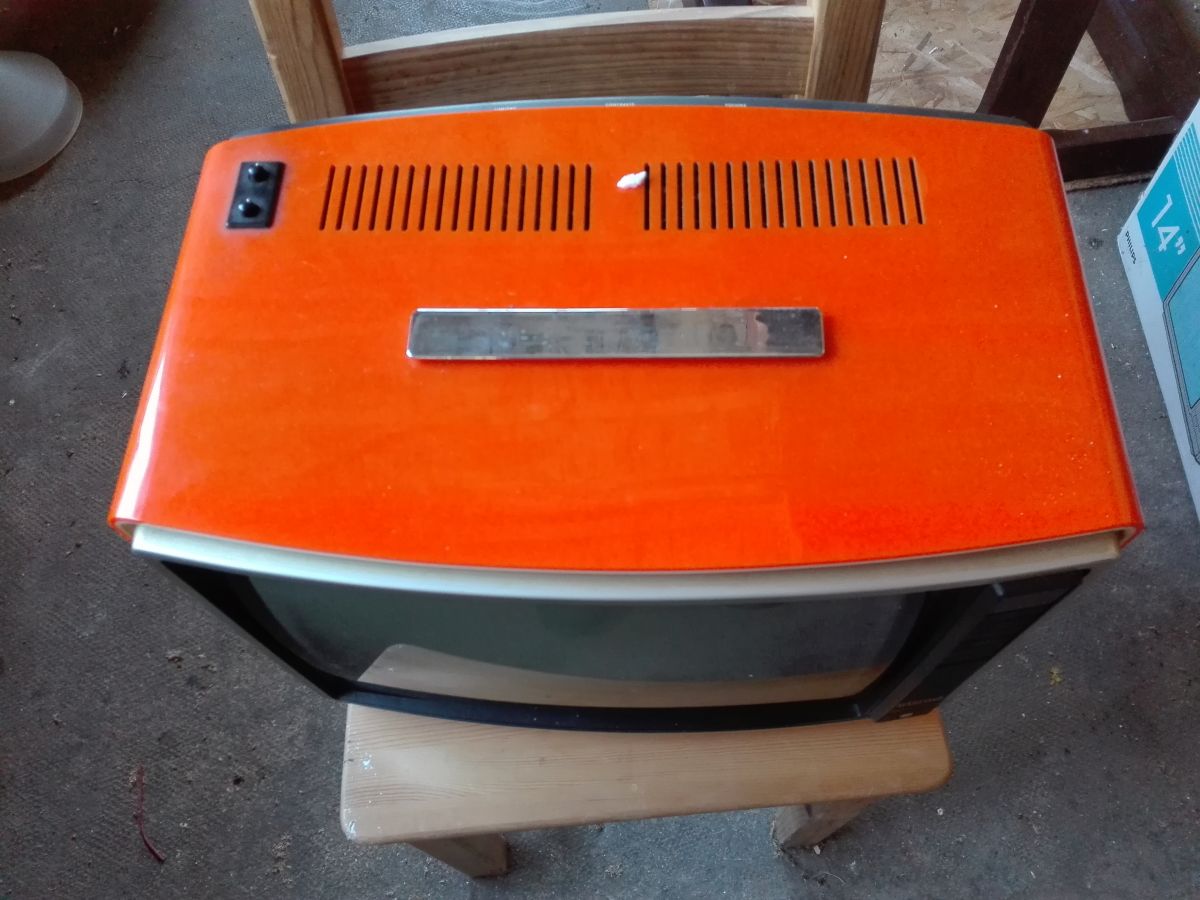 Ancienne télé vintage de marque Pathé Marconi 36 cm en bon état couleur orange assez original pour déco