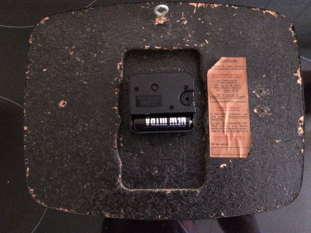 Le mécanisme d’origine a été remplacé par un mouvement à quartz alimenté par une pile bâton de 1,5 volts.