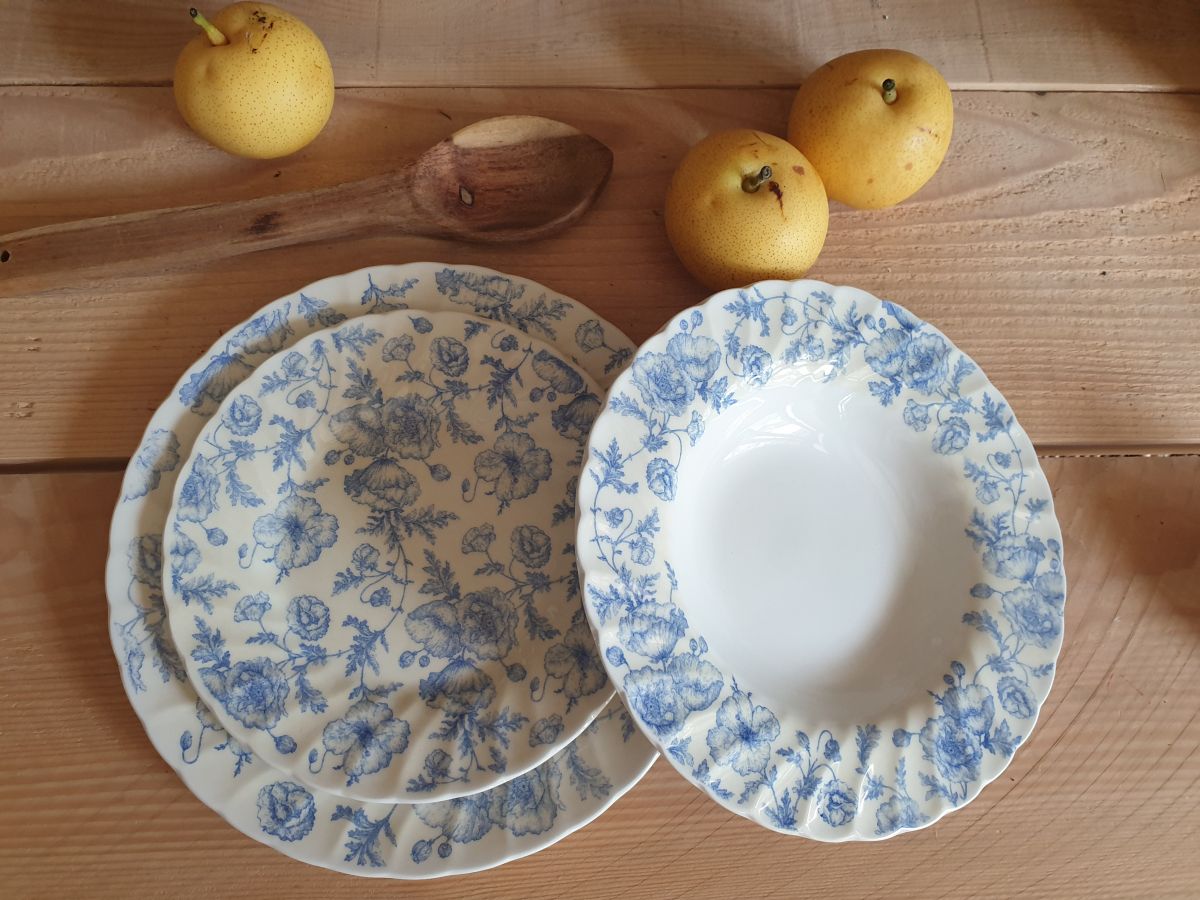 Joli ensemble anglais de 3 assiettes au motif fleuri de la marque churchill.