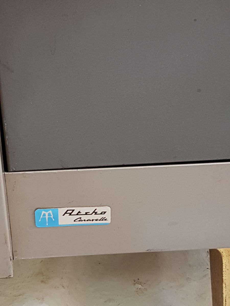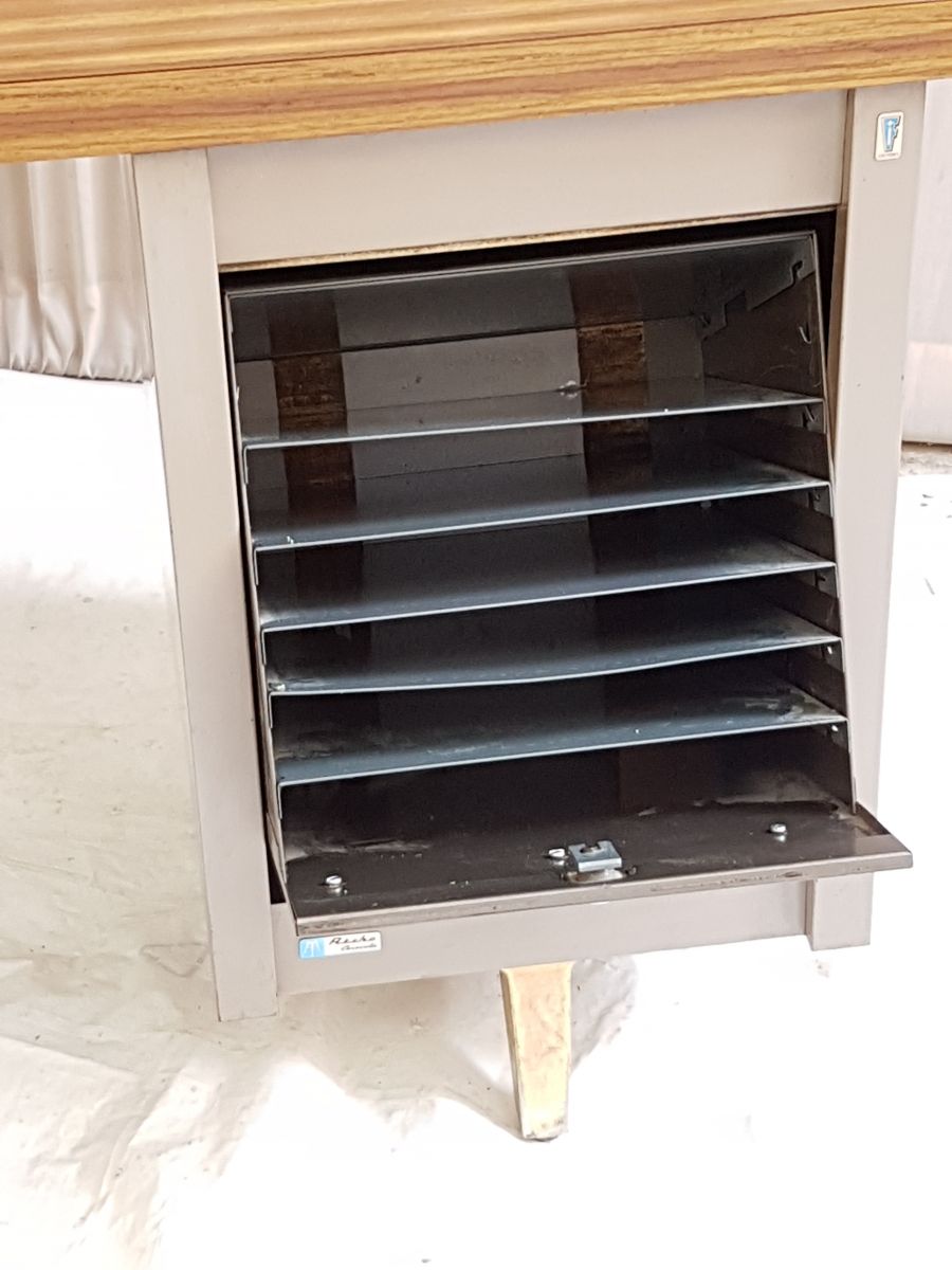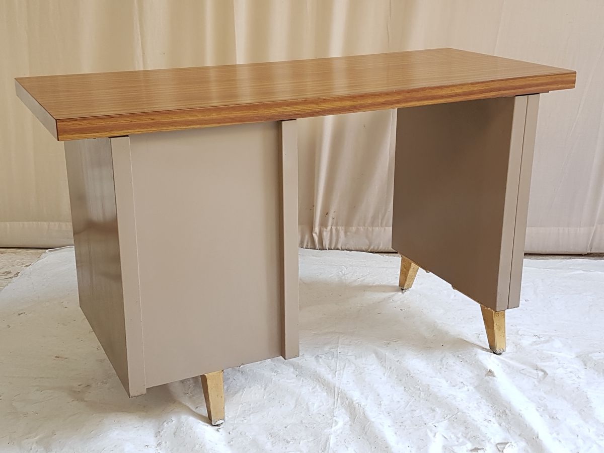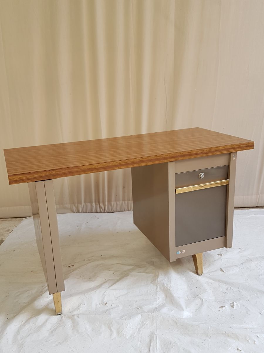 Joli bureau en métal des années 60, reposant sur 4 pieds compas de couleur doré