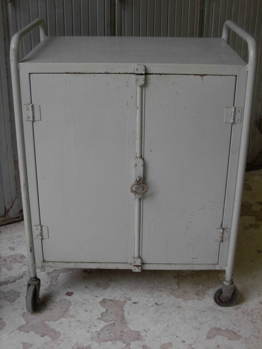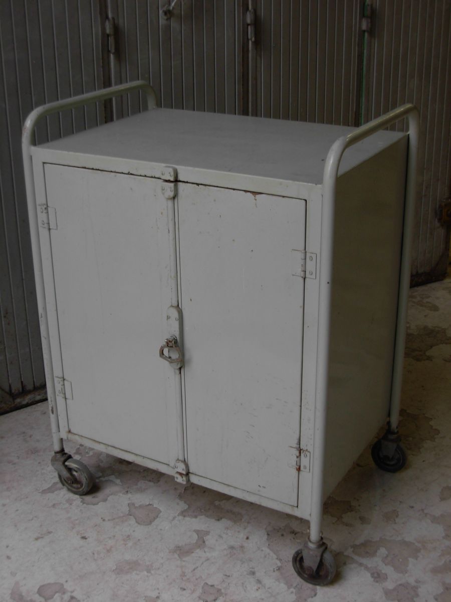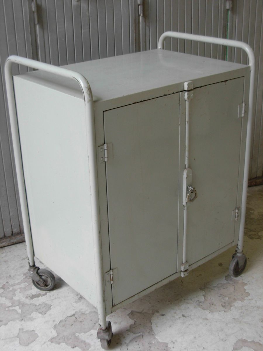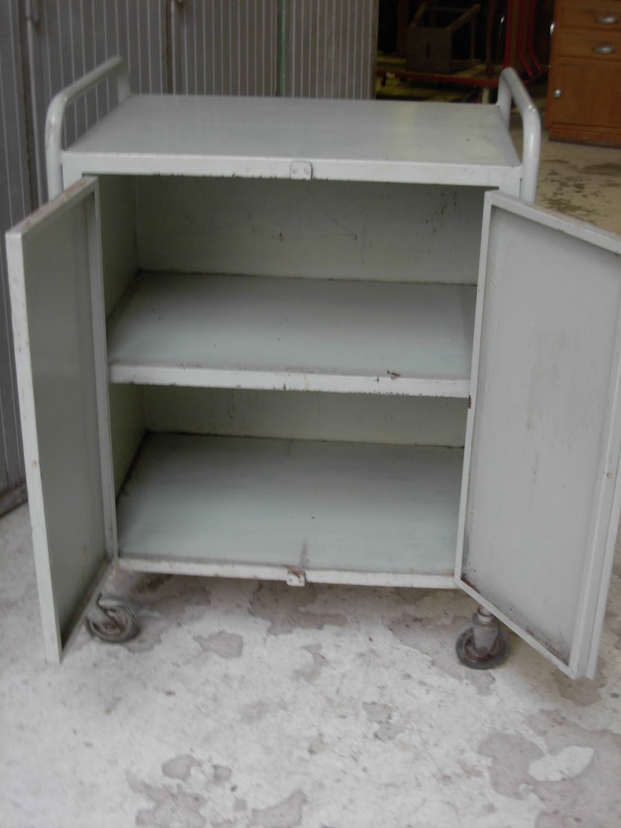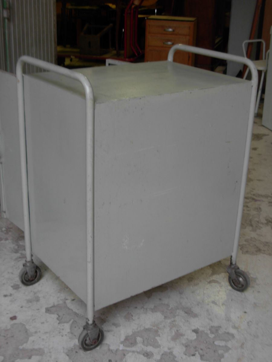 Véritable chariot/desserte de réfectoire d'usine de couleur gris métal