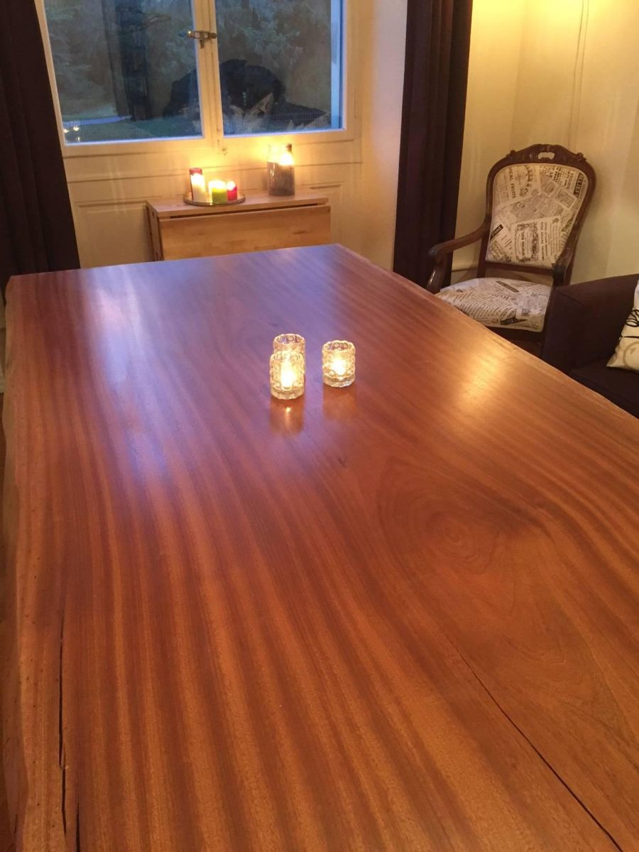 - Plateau en acajou massif d'Amérique Latine issu d'une grume de 4,50 mètres et découpée à Bacalan (33)