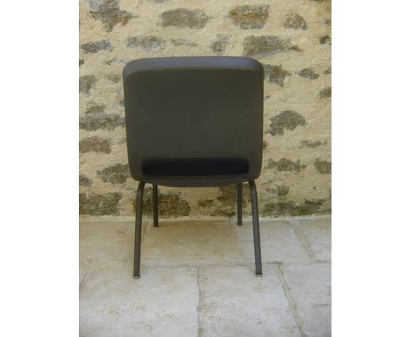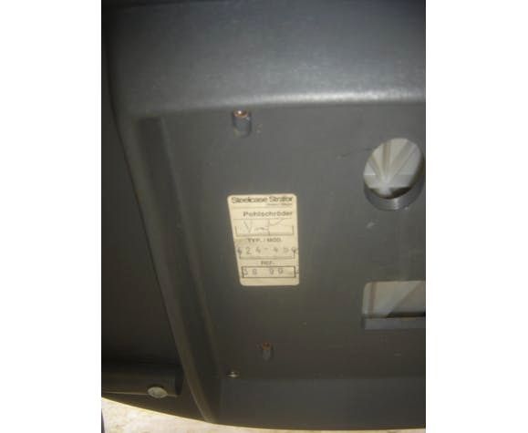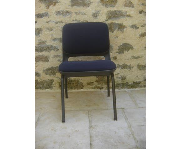 fauteuil de bureau conférence steelcase strafor de couleur bleu marine pour le tissu et gris anthracite pour la coque. En bon état vintage: usure légère conforme à l’âge et à l’usage. Les pieds sont en acier, la coque entourant le tissu est un plastique dur et épais .