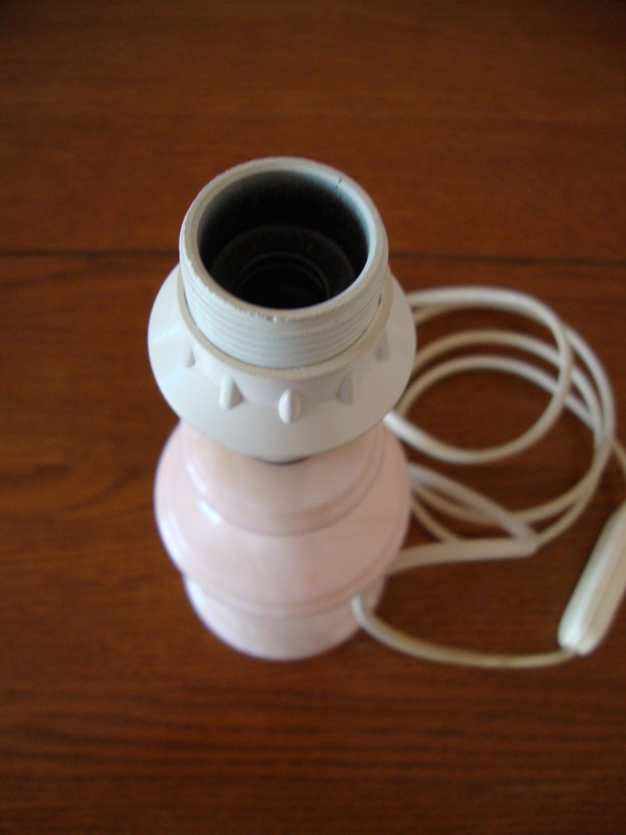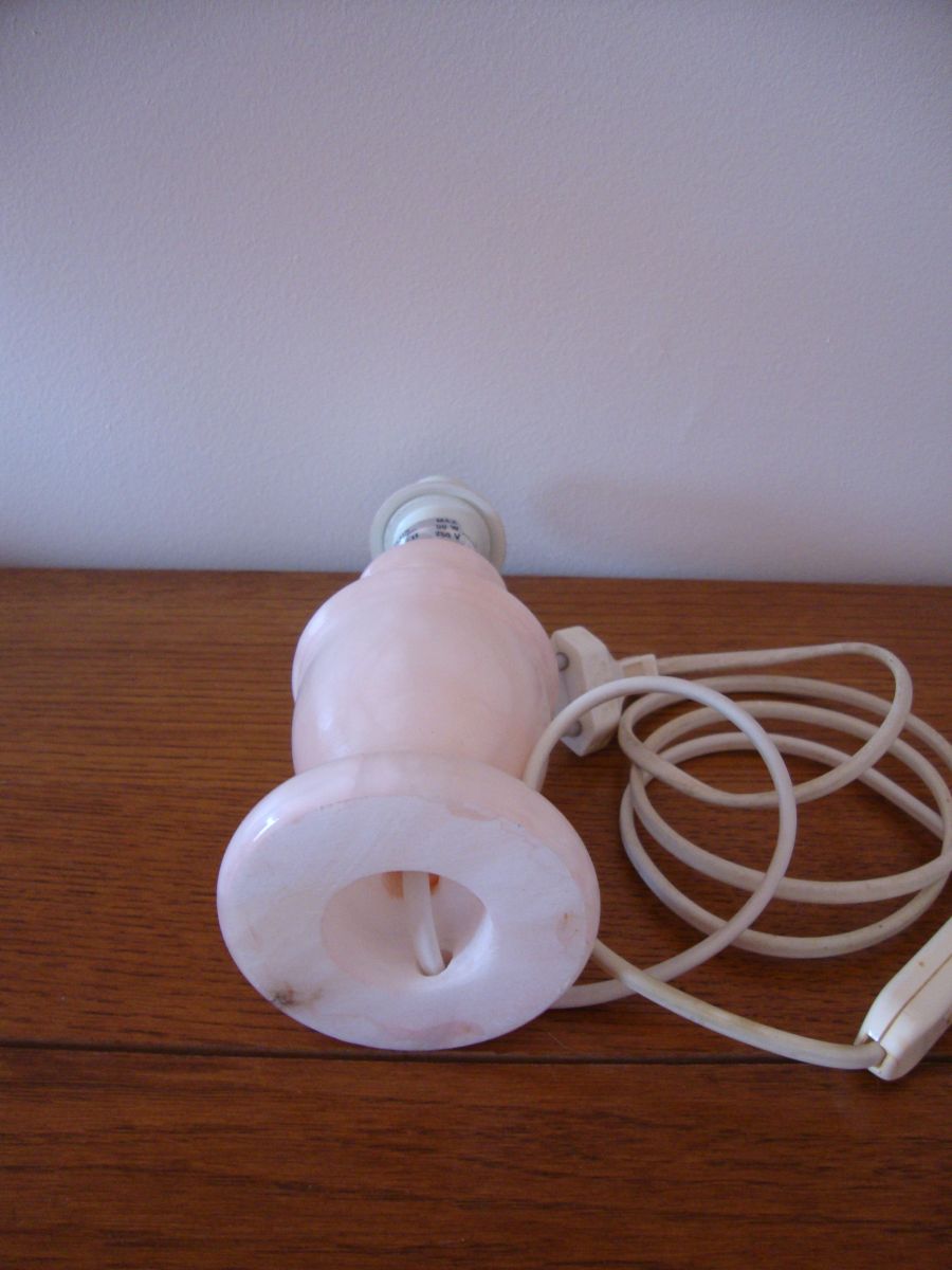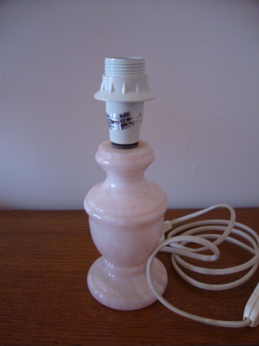 Petit pied de lampe de chevet en Albâtrerose pastel (années 1980)