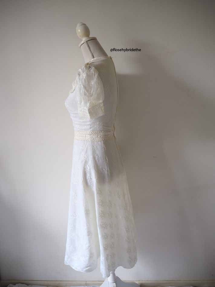 Superbe robe en dentelle blanche datant de la période hippie des années 1970.