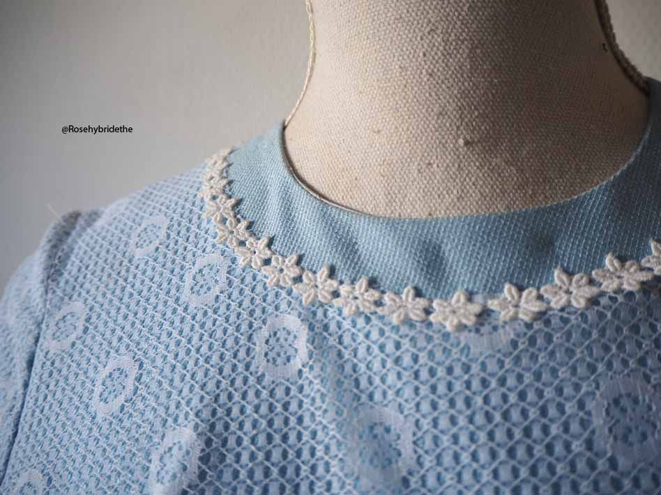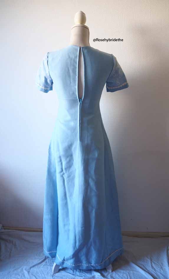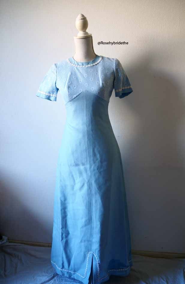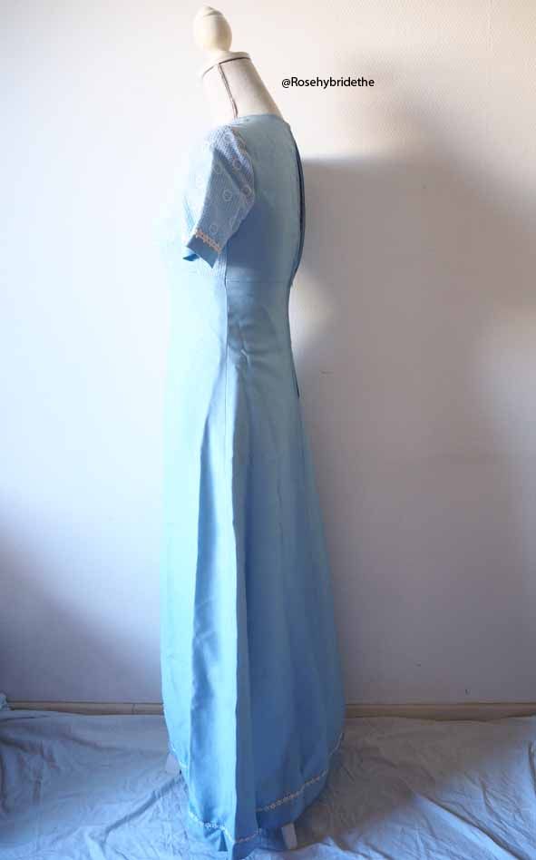 Longue robe hippie bleue ciel dentelle vintage 70's