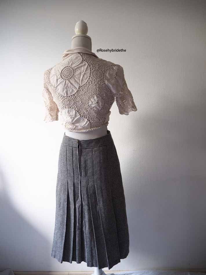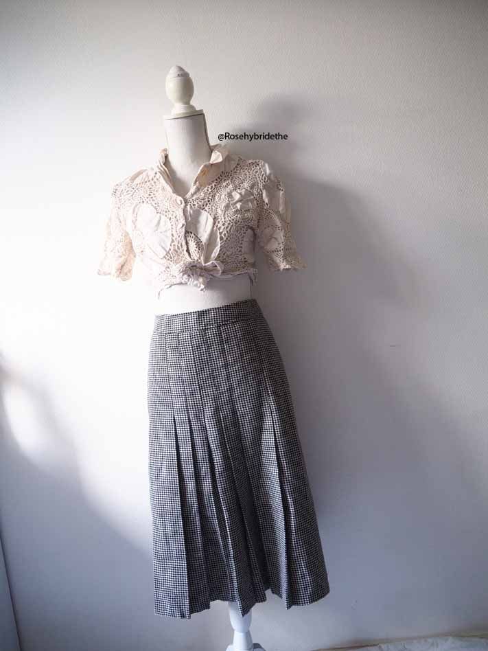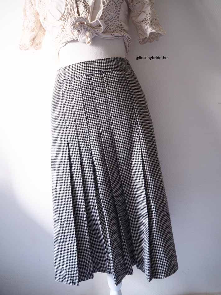 Jupe midi plissée en laine motifs pied de poule vintage 70's