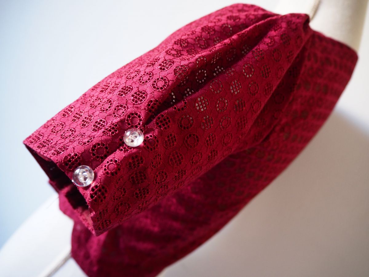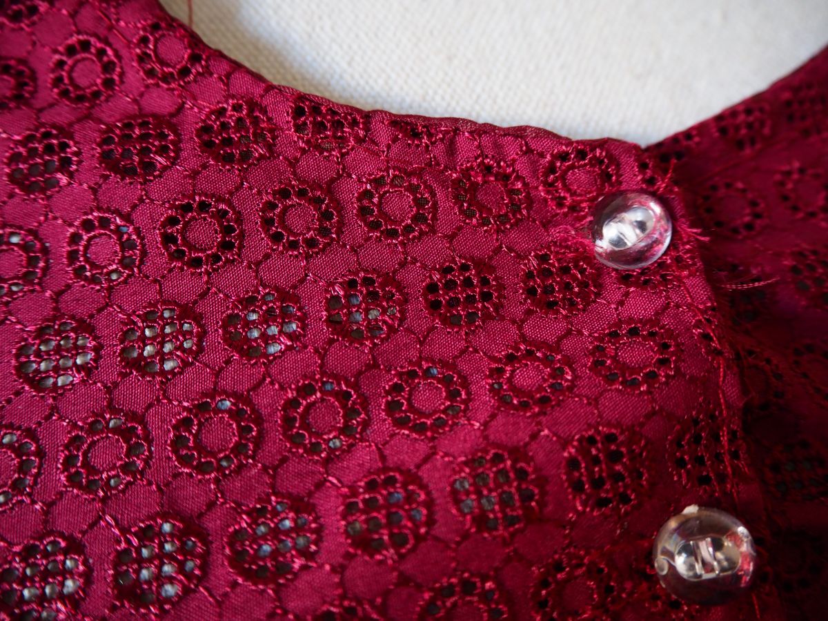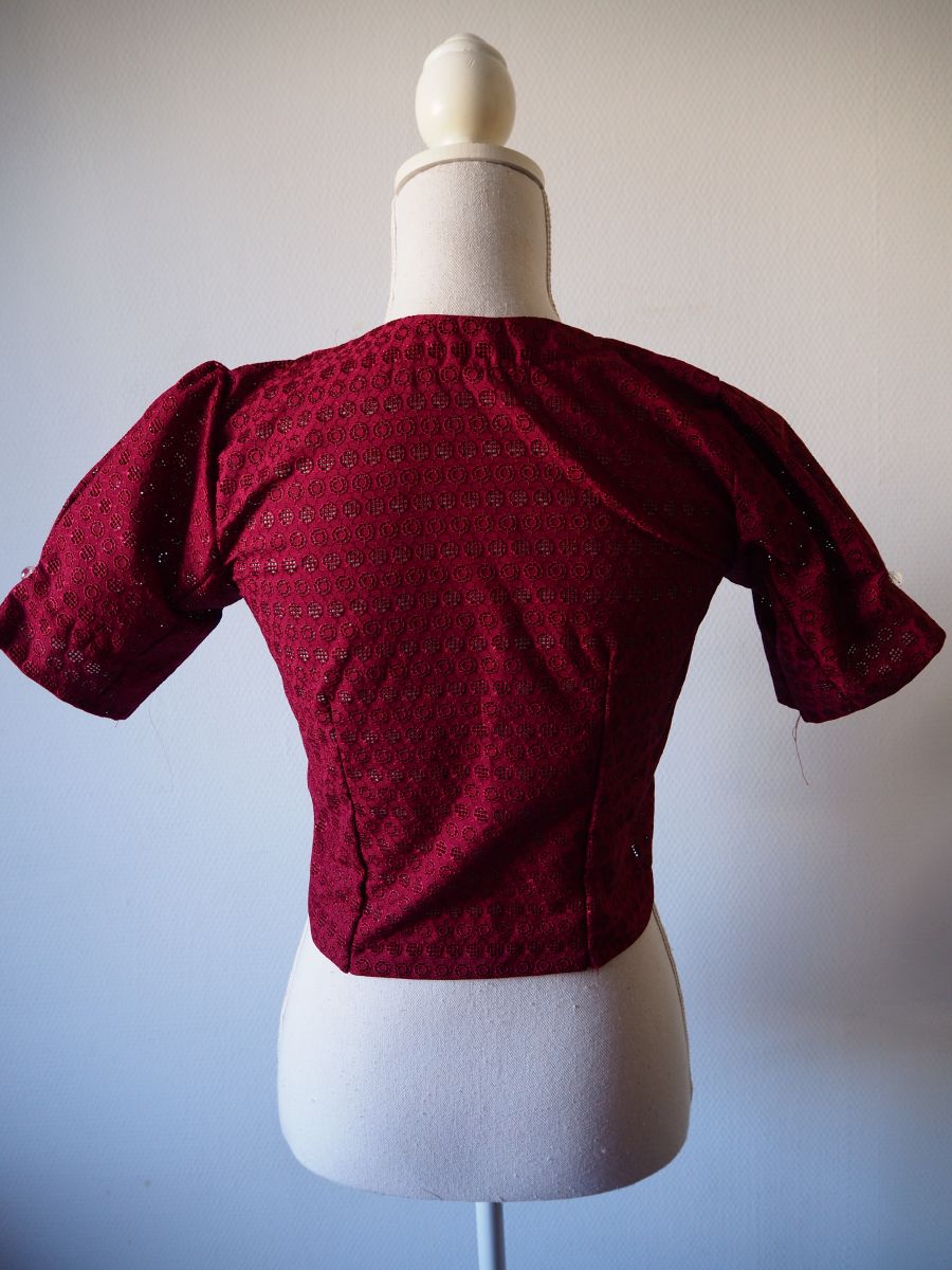 Joli petit chemisier en dentelle rouge bordeaux, entièrement confectionné main.