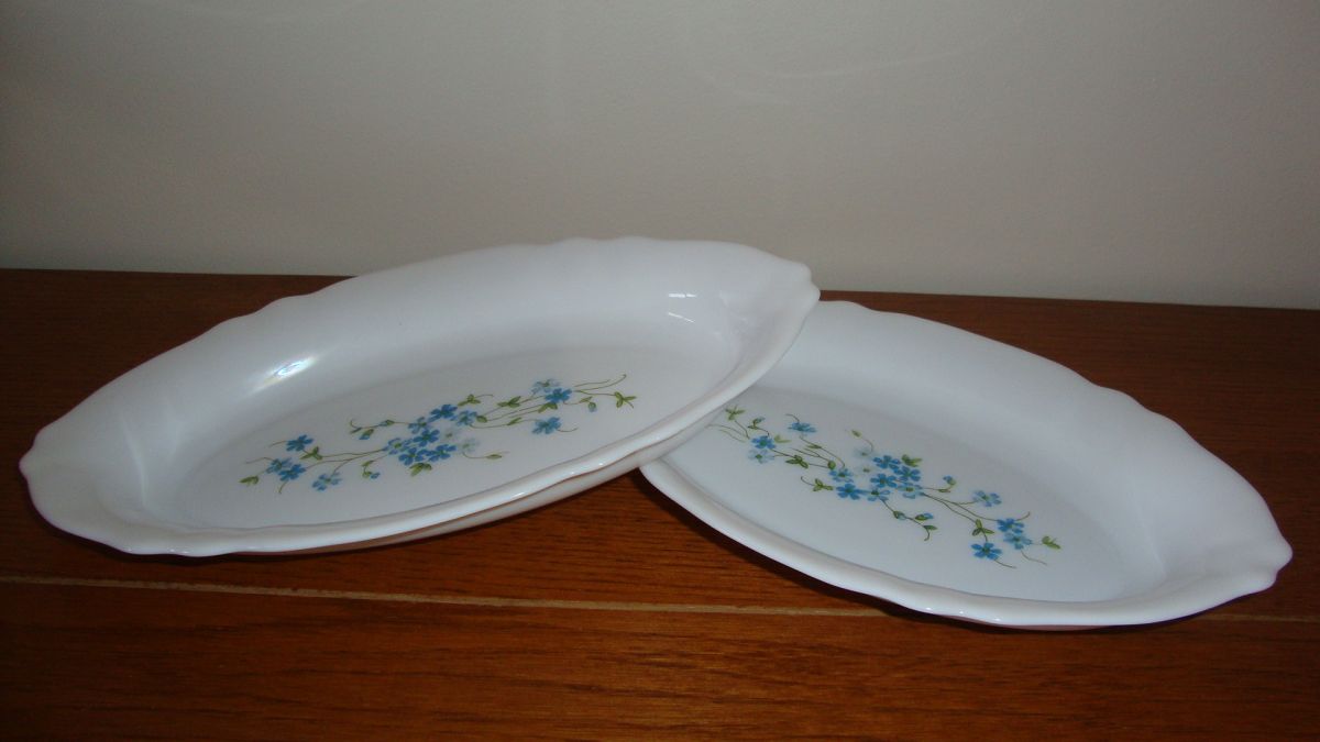 2 raviers vintage en arcopal Modèle Veronica décor "Myosotis"
