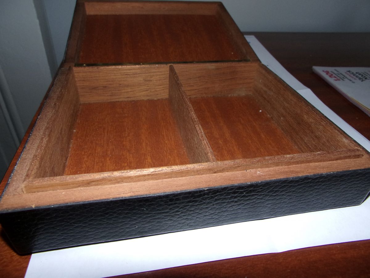 Petit coffre en cuir et intérieur bois