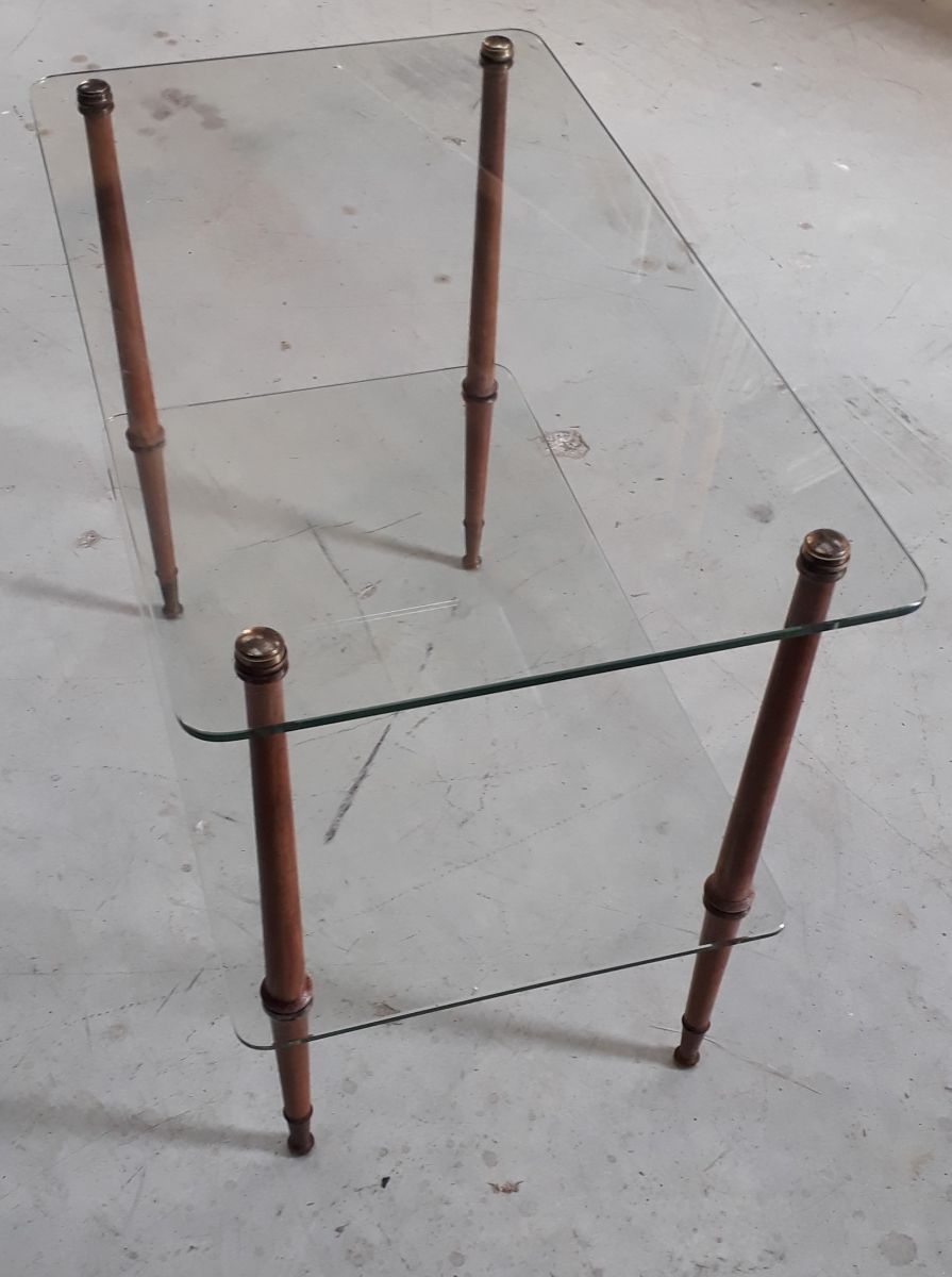 petite table basse en verre et bois 1960