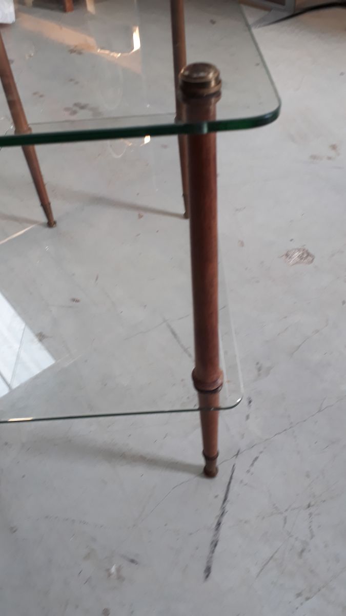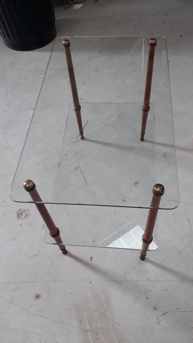 petite table basse en verre et bois 1960 tres bon etat h55x4