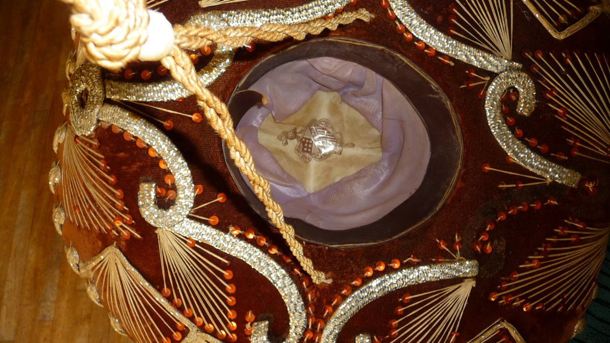 Véritable et authentique sombrero en velours, avec déco en fils tendus et perles plates, + fioritures argentées brillantes (malheureusement, une est manquante, cf photo 5 à gauche)