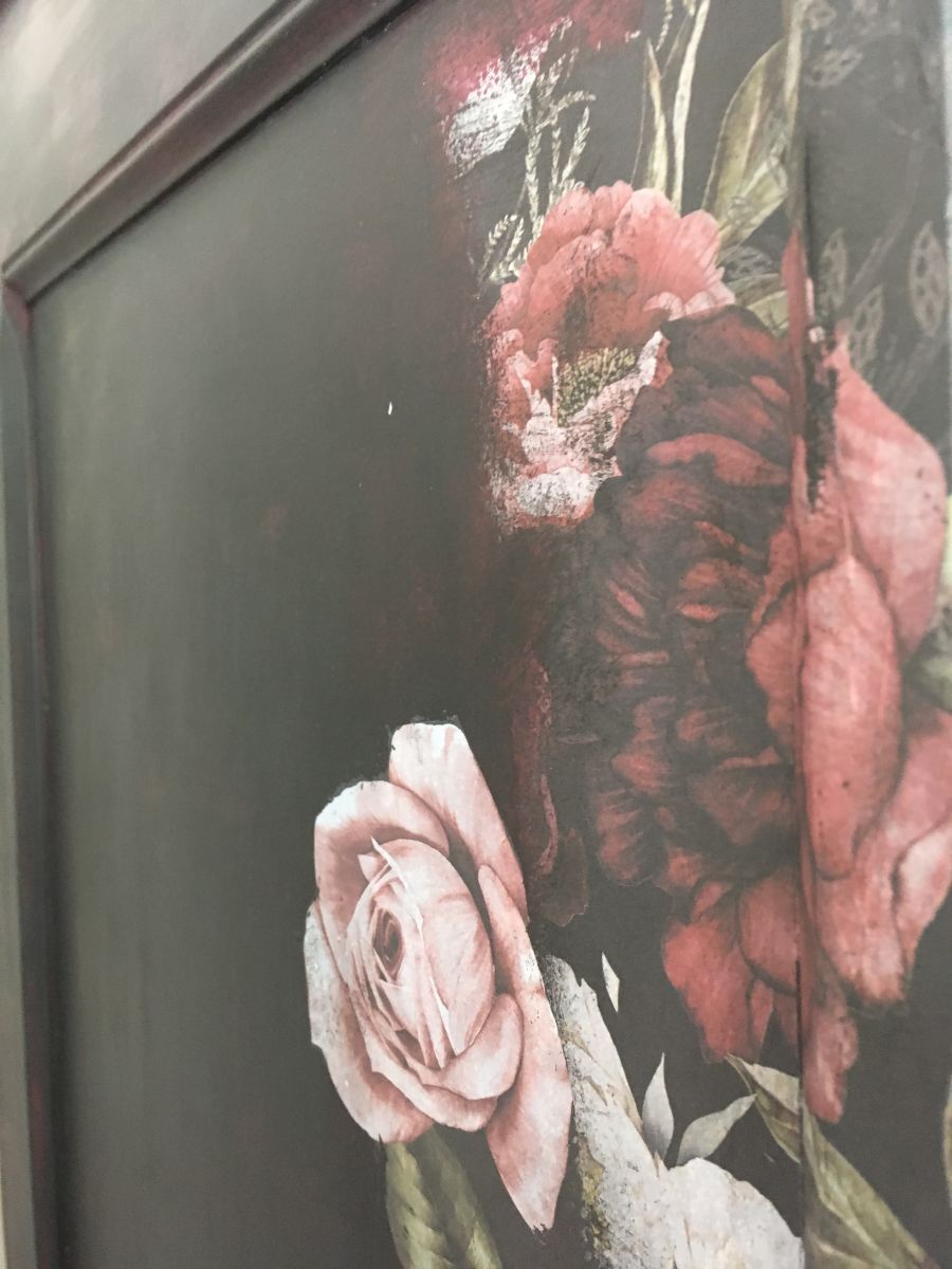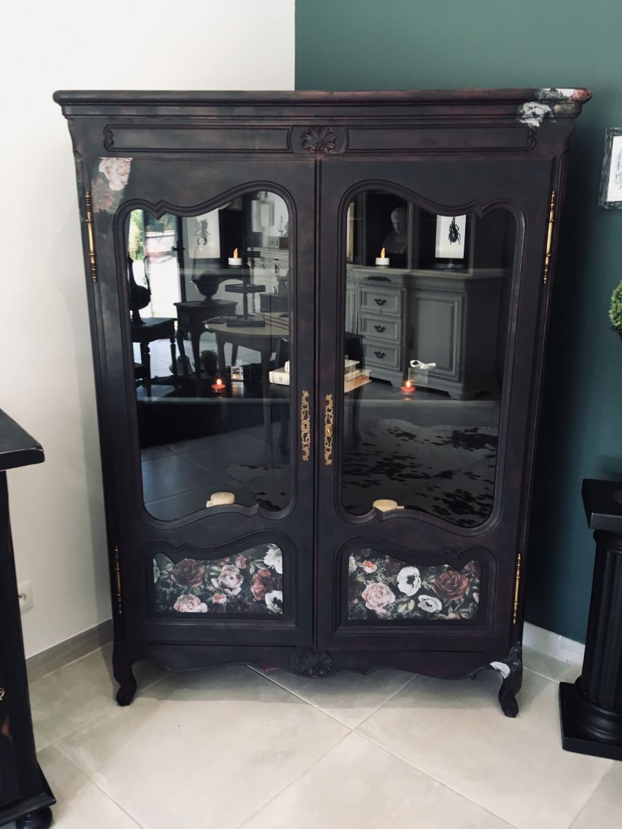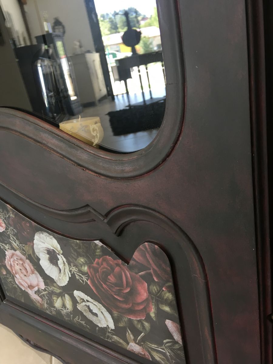 création d une bibliothèque aubergine avec surimpression de noir mate transfert fleur romantique protection cire incolore dimension :