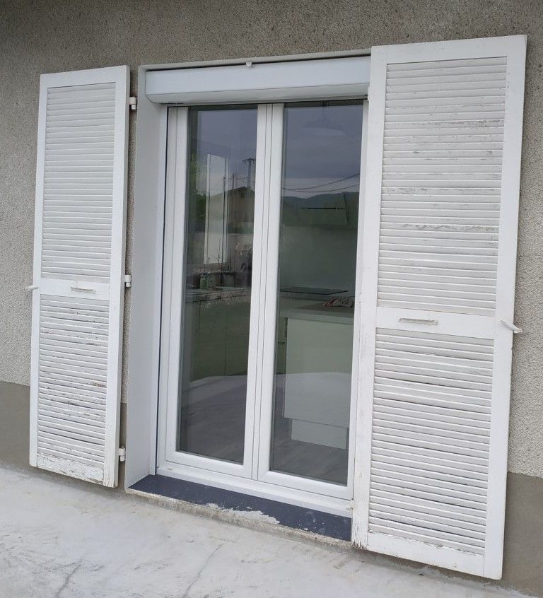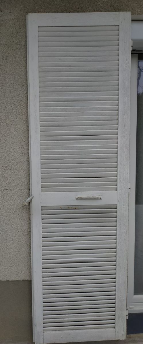 Vends lot de 5 paires de volets persiennes bois (dimensions 2,38 m X 0,70m) et 3 paires de volets persiennes bois de dimension 1,38m X 0,70m).