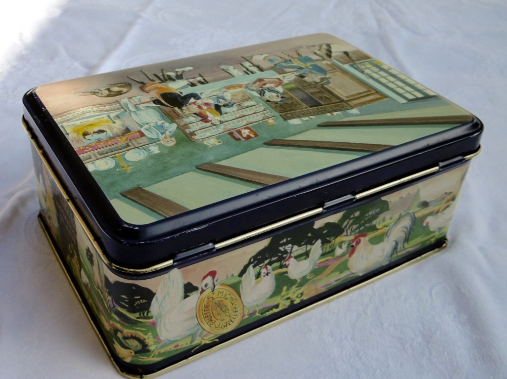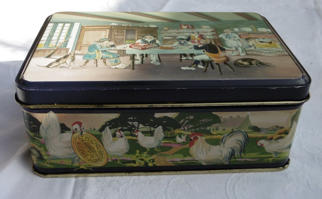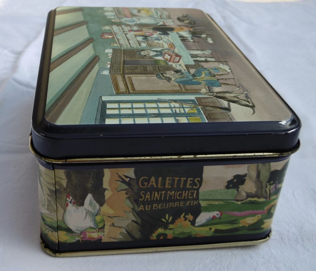 Très belle ancienne boîte en tôle, des galettes Saint Michel, par J. Grellier. Bon état général.