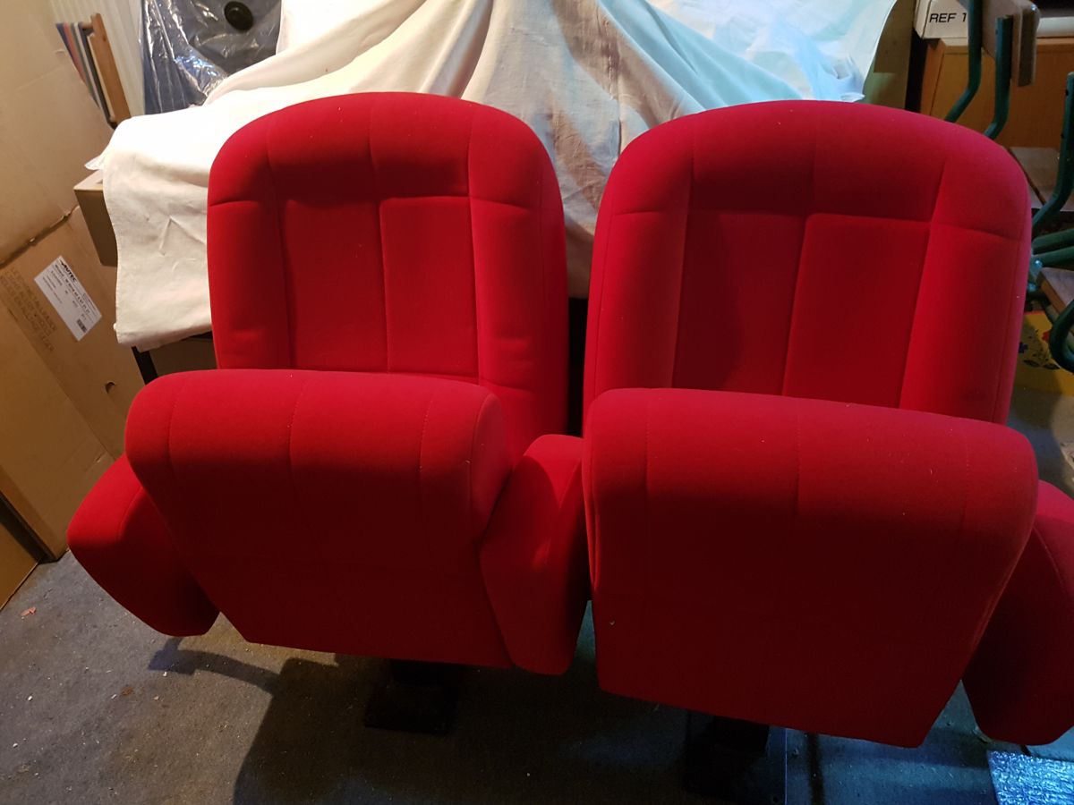 2 fauteuils de cinéma des années 80. Velours rouge (plus rouge que sur la photo ...)