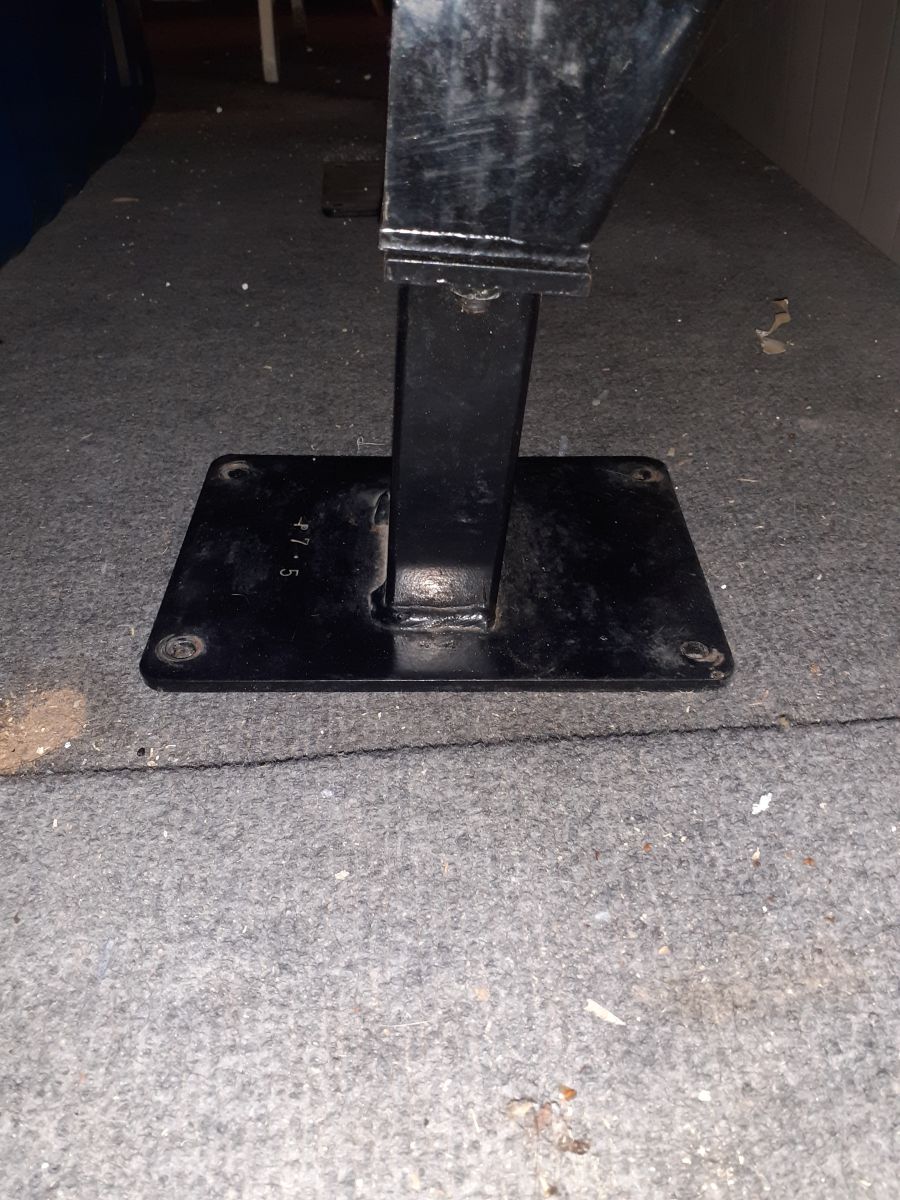 Je vous fais la photo demain. Il me semble que ce sont 2 pieds plaques en métal , à fixer au sol ou sur un socle.