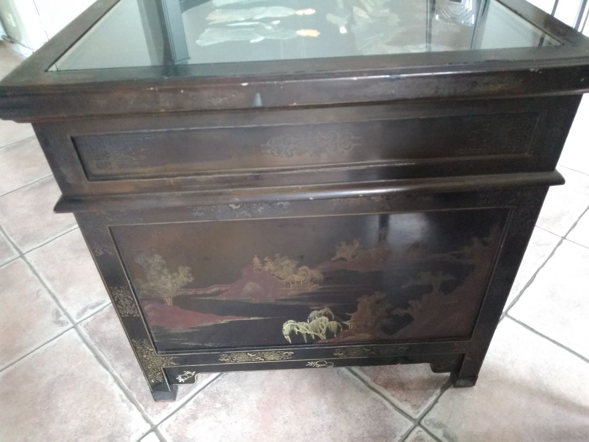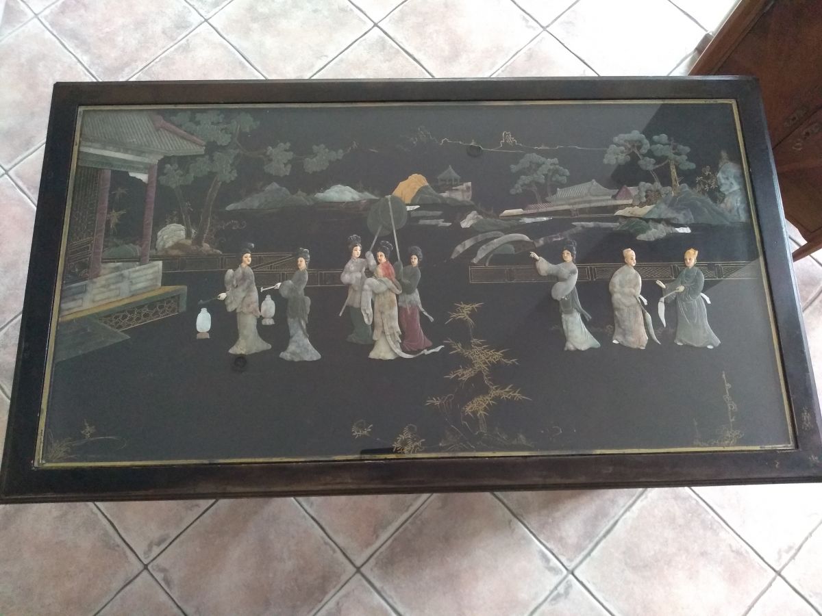 Plateau avec un décors de pierres en relief, protégé par vitre.