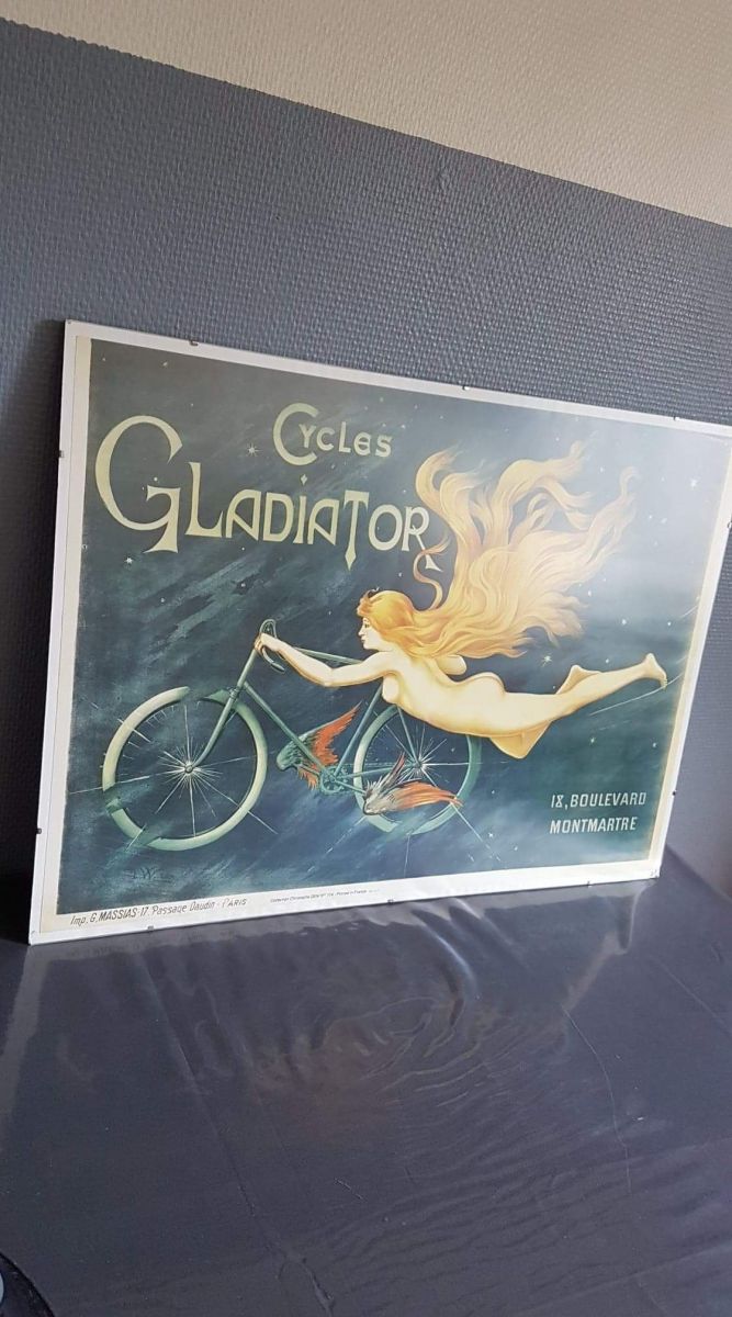 affiche publicitaire Cycles Gladiator vintage des années 70 sous verre