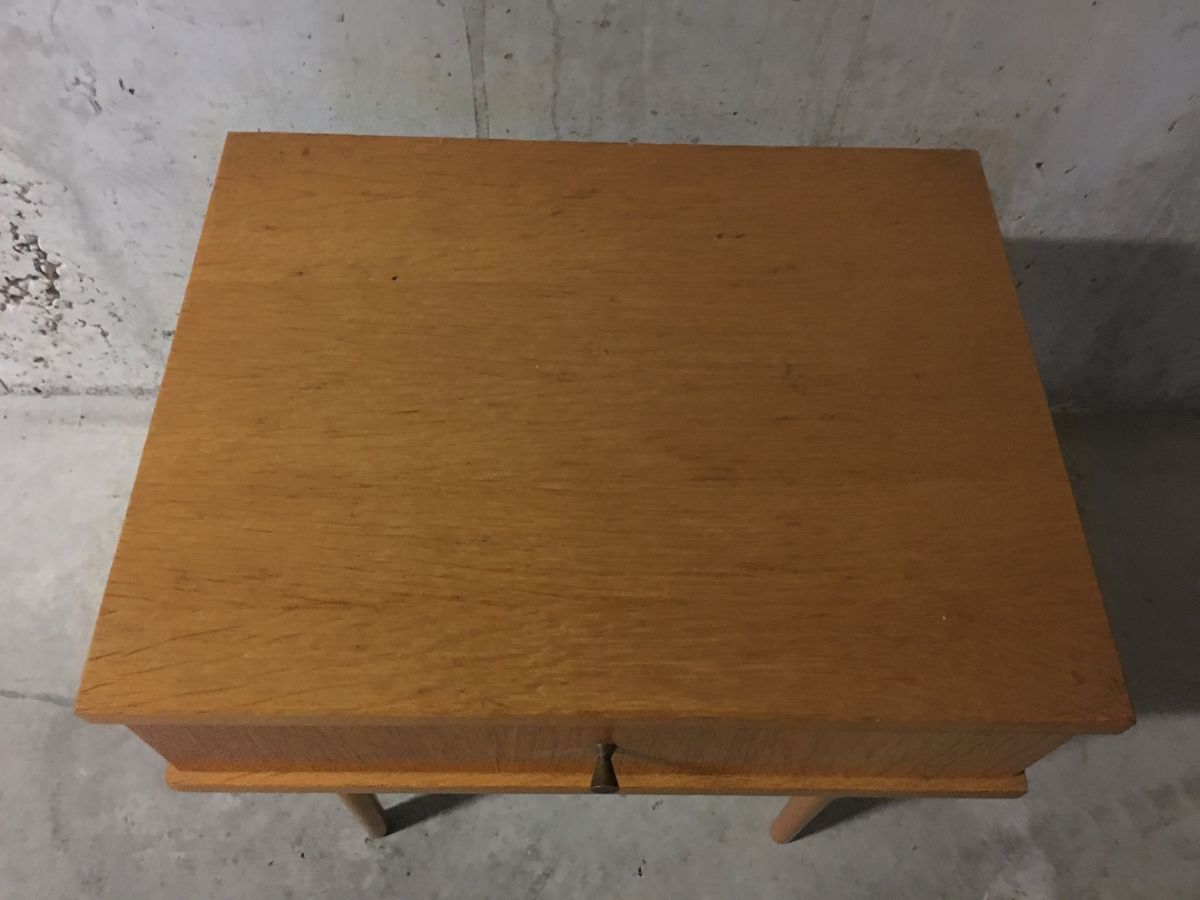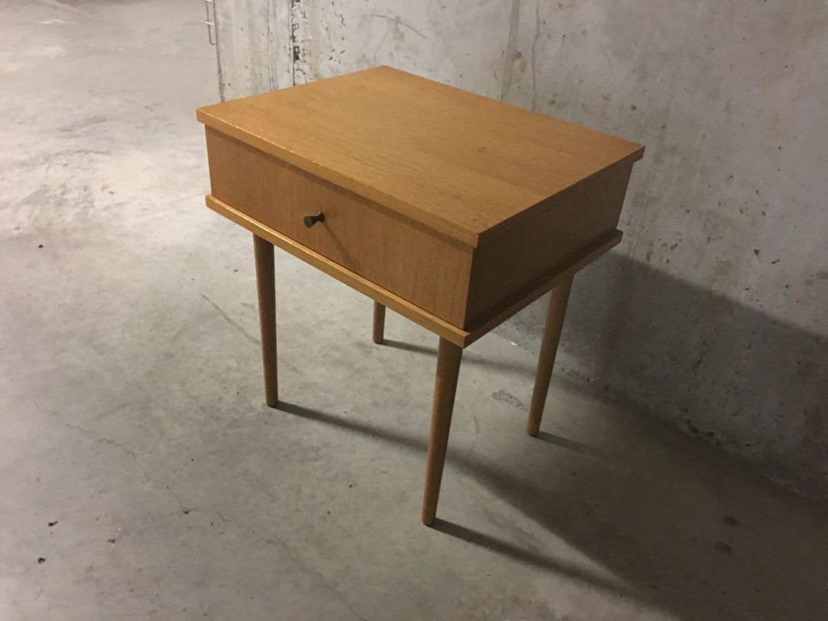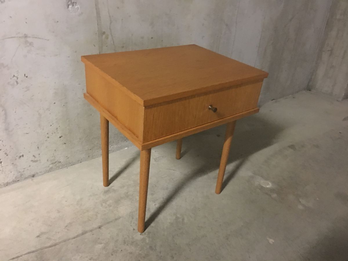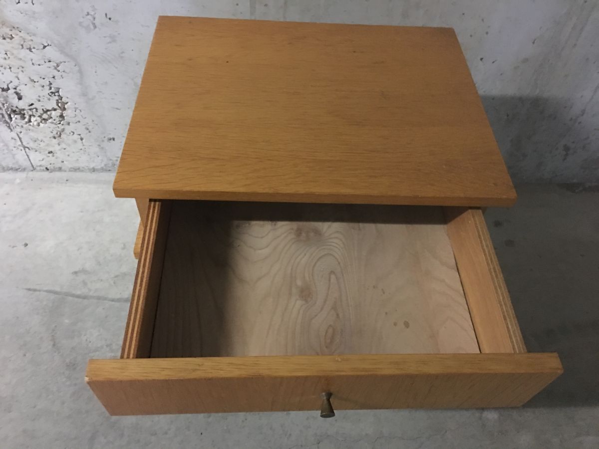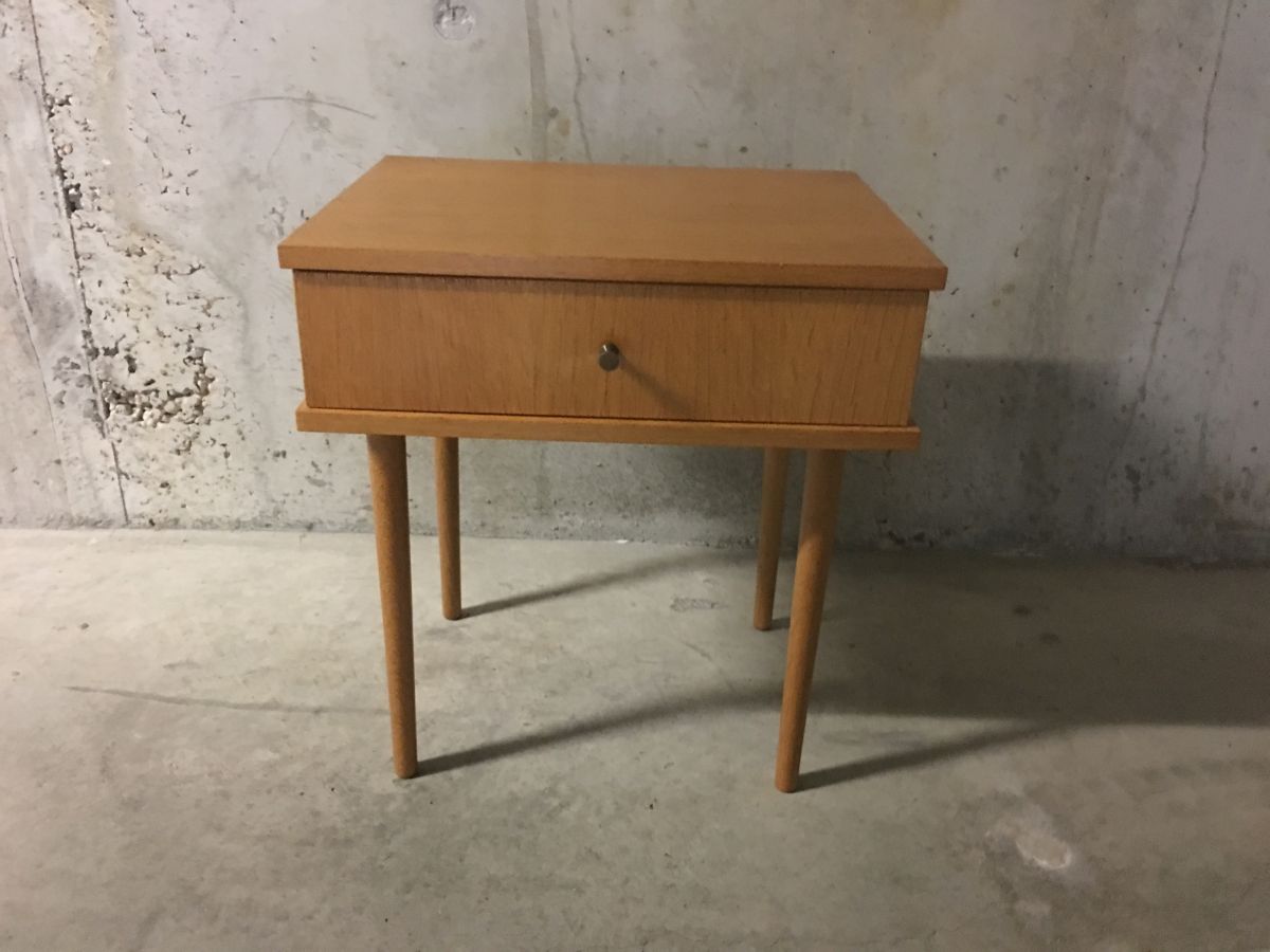 Magnifique chevet des années 50 en bois clair, 1 tiroir, superbe patine du temps, dimensions (cm) : L.45xH.50xP.35, bon état.