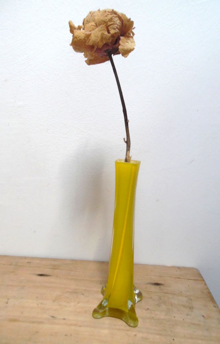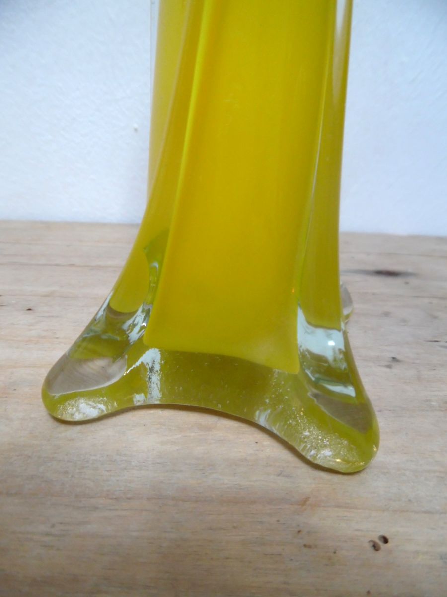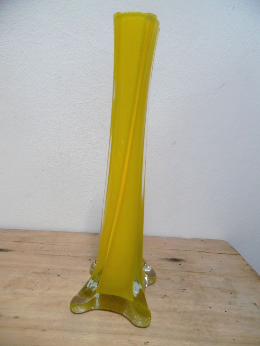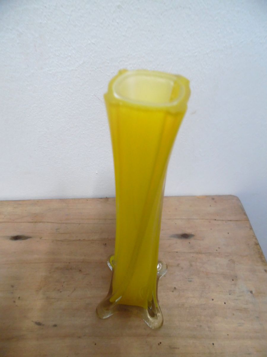 joli soliflor en verre ,double couche ,blanc et jaune .petits éclats sur le haut qui ne ce voit pas ,se sent au touché, couleur pop..