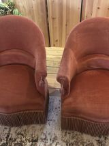 Élégante paire de fauteuils dit "crapaud" / Napoléon III en velours rose poudré, couleur plutôt tendance pour déco rétro/ vintage.