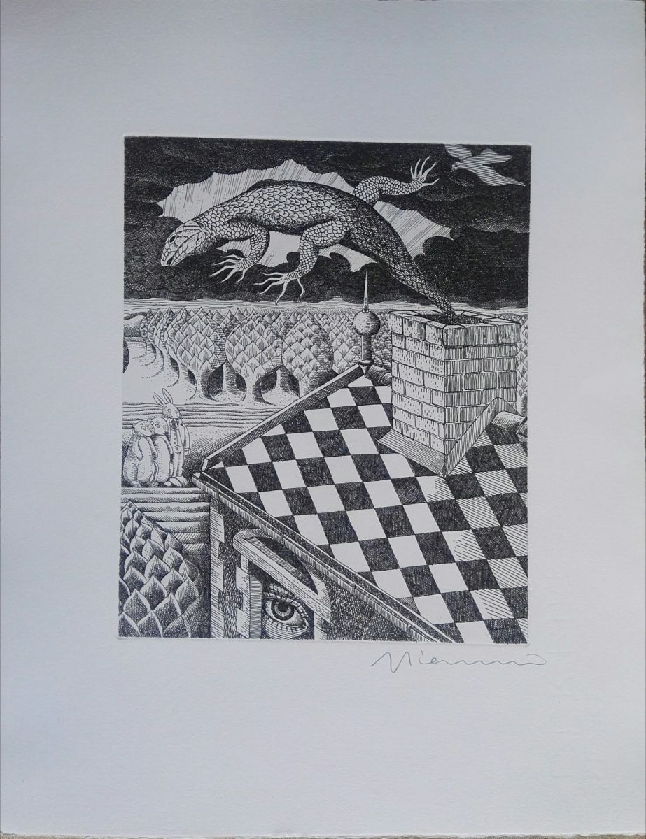Superbe gravure originale signée au crayon par l'artiste - Pointe sèche pour Alice au pays des merveilles de Lewis Carroll.