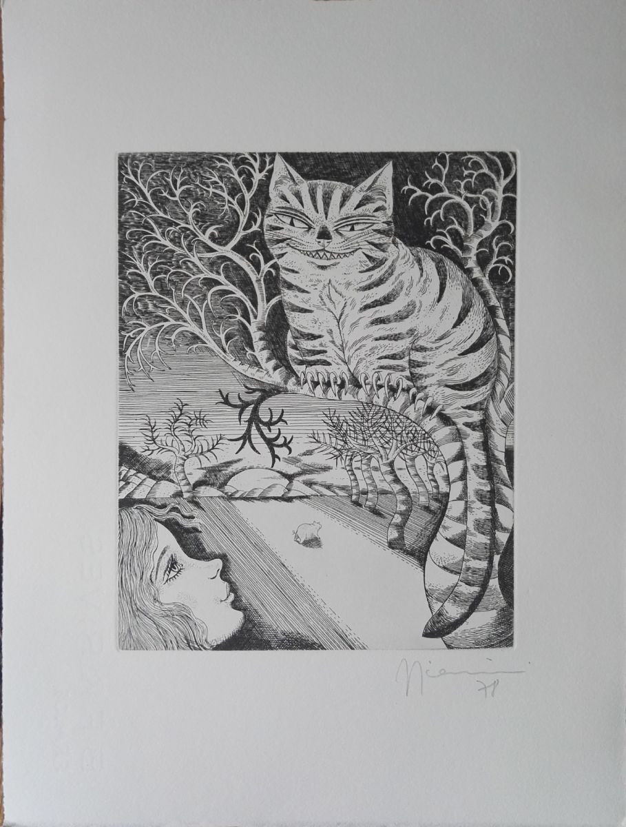 Superbe gravure originale signée au crayon par l'artiste - Pointe sèche pour Alice au pays des merveilles de Lewis Carroll.