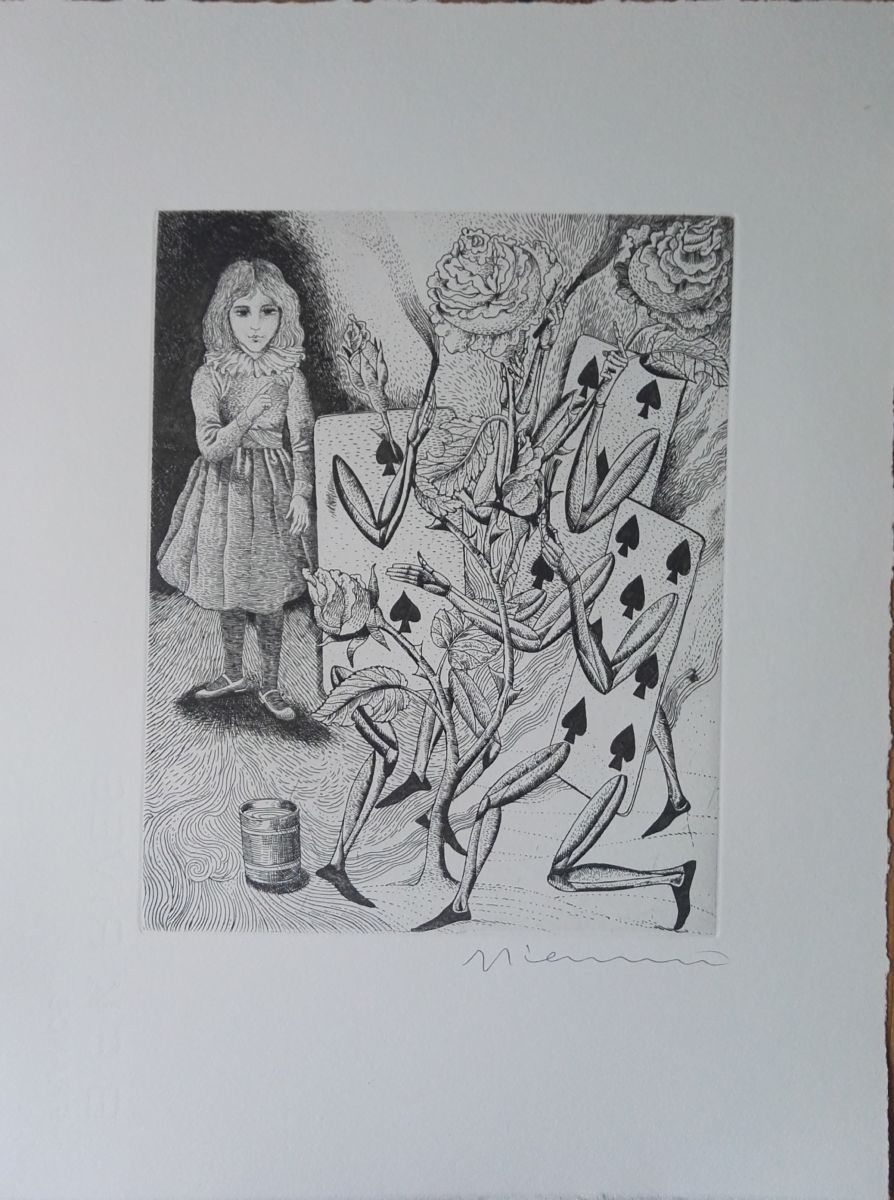 Superbe gravure originale signée au crayon par l'artiste - Pointe sèche pour Alice au pays des merveilles de Lewis Carroll.