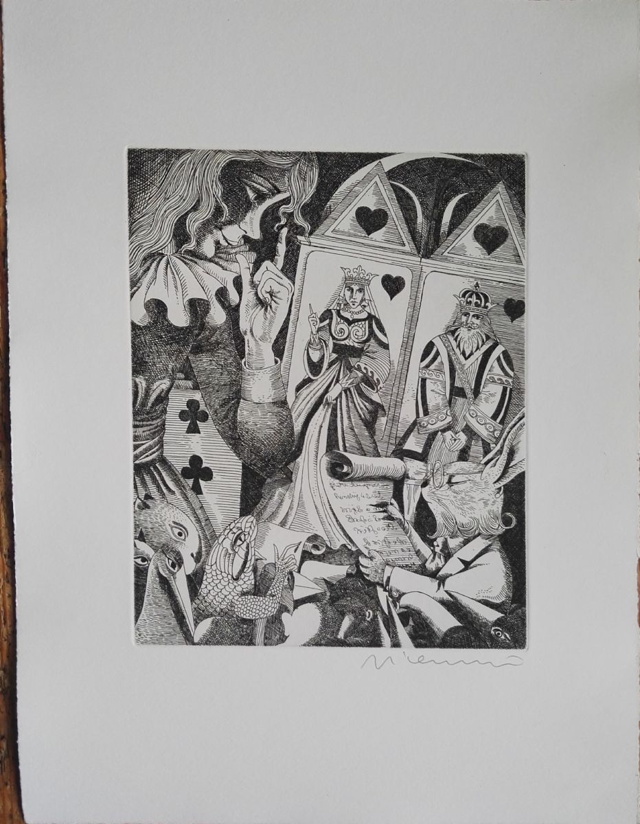 Superbe gravure originale signée au crayon par l'artiste - Pointe sèche pour Alice au pays des merveilles de Lewis Carroll.