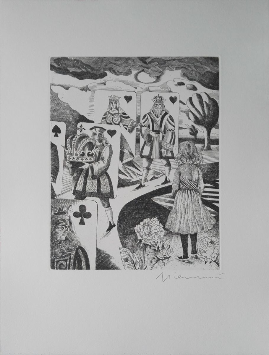 Superbe gravure originale signée au crayon par l'artiste - Pointe sèche pour Alice au pays des merveilles de Lewis Carroll.