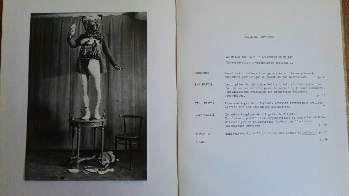 "Dans Le Mythe tragique de l'Angélus de Millet, écrit en 1938, Salvador Dalí applique ce même procédé à l'interprétation paranoïaque-critique du tableau de Jean-François Millet, analysant en termes d'associations personnelles, irrationnelles et obsessionnelles les éléments distincts qui le composent."