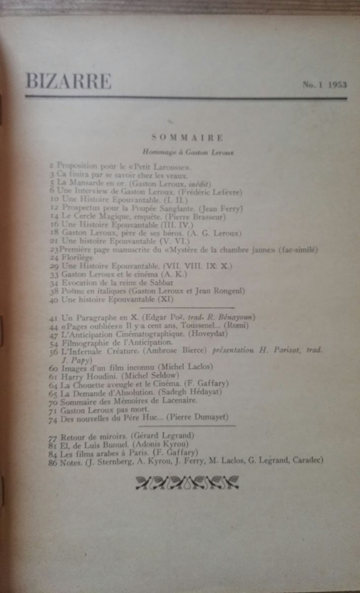 Revue Bizarre n° 1 consacrée a Gaston Leroux 1953