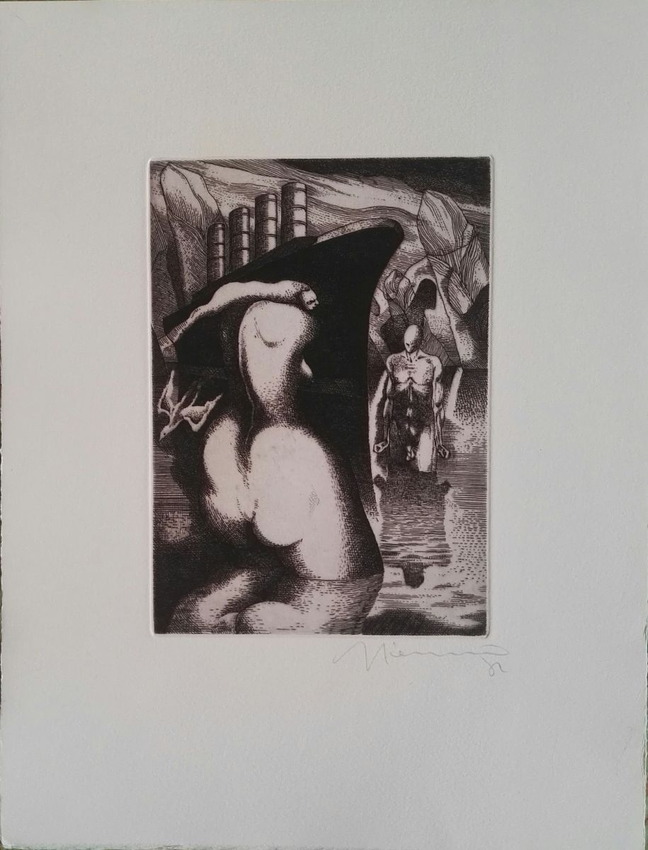 Superbe gravure originale, signée au crayon par l'artiste. Pointe sèche pour Les Aventures d'Arthur Gordon Pym d'Edgar Poe