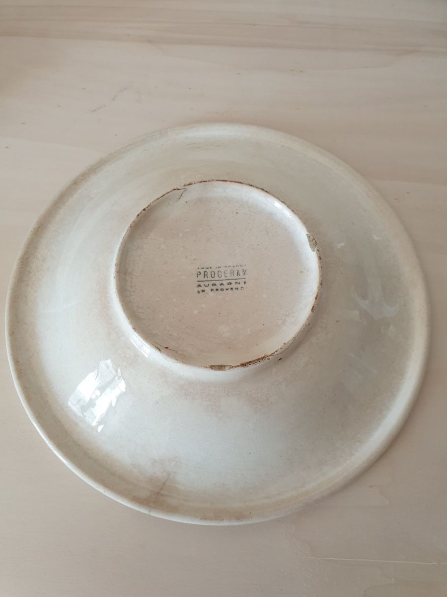 Joli plat ancien à motif, de la marque Proceram fabriqué à Aubagne .