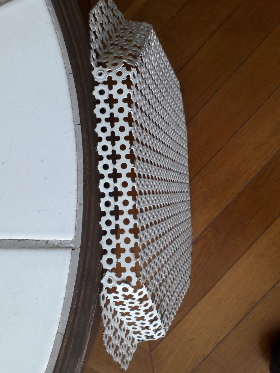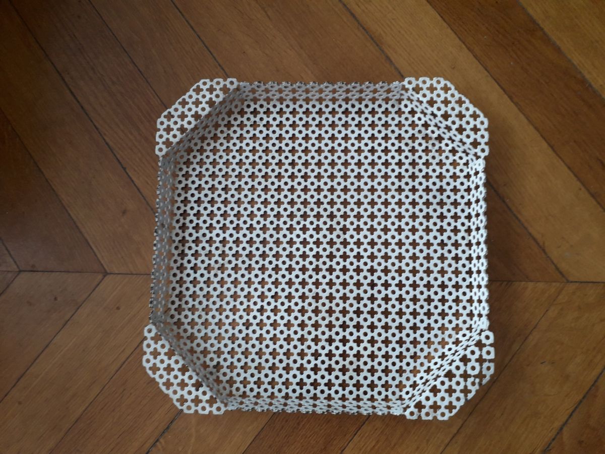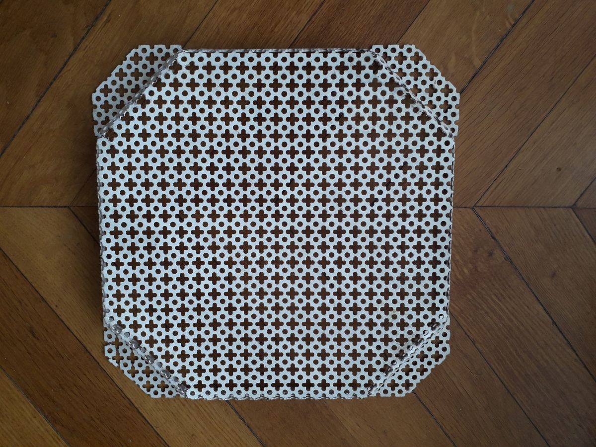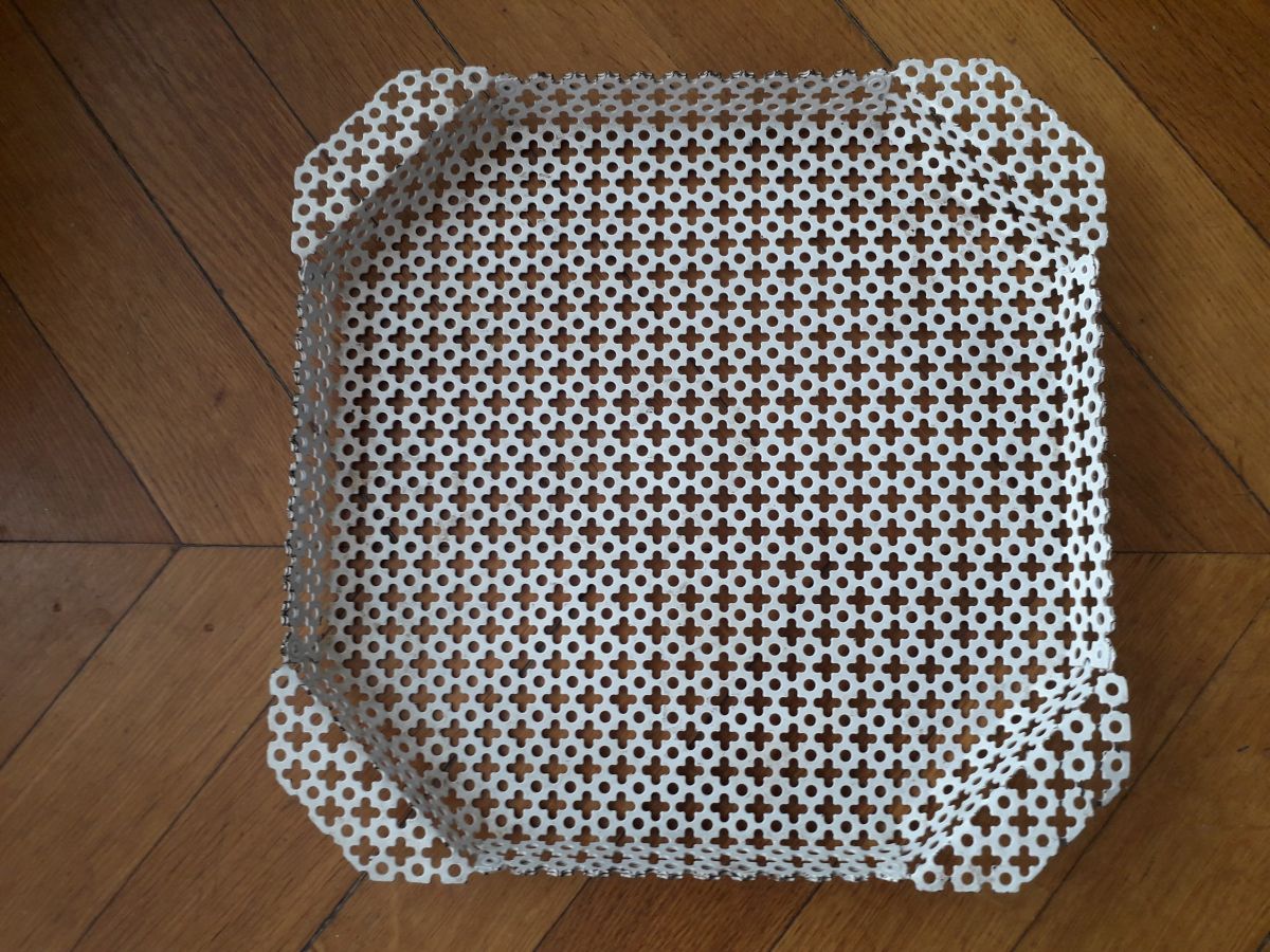 Plateau métallique carré des années 50 de Mathieu Matégot en métal blanc. Les angles sont biseautés avec des poignées.