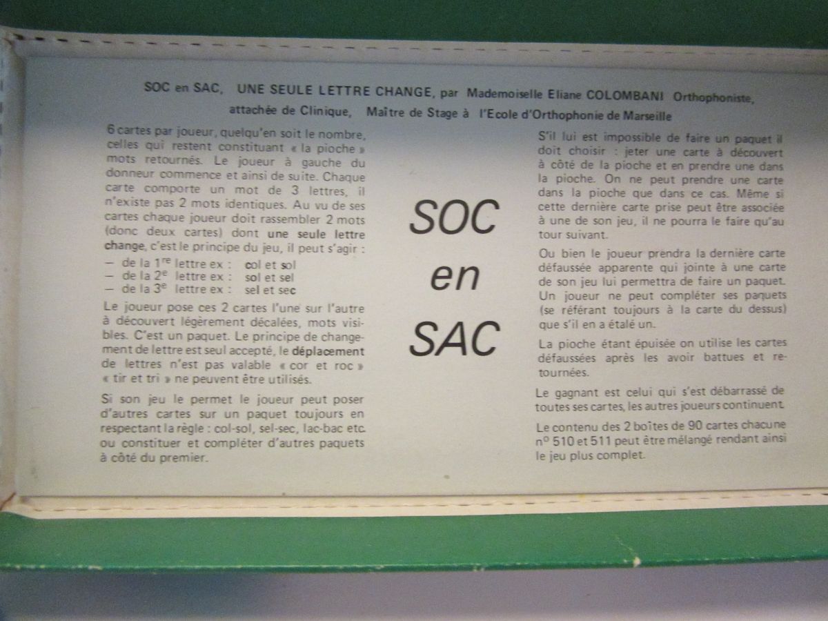 Jeu éducatif conçu par E. Colombani, orthophoniste pour l'enseignement spécialisé.