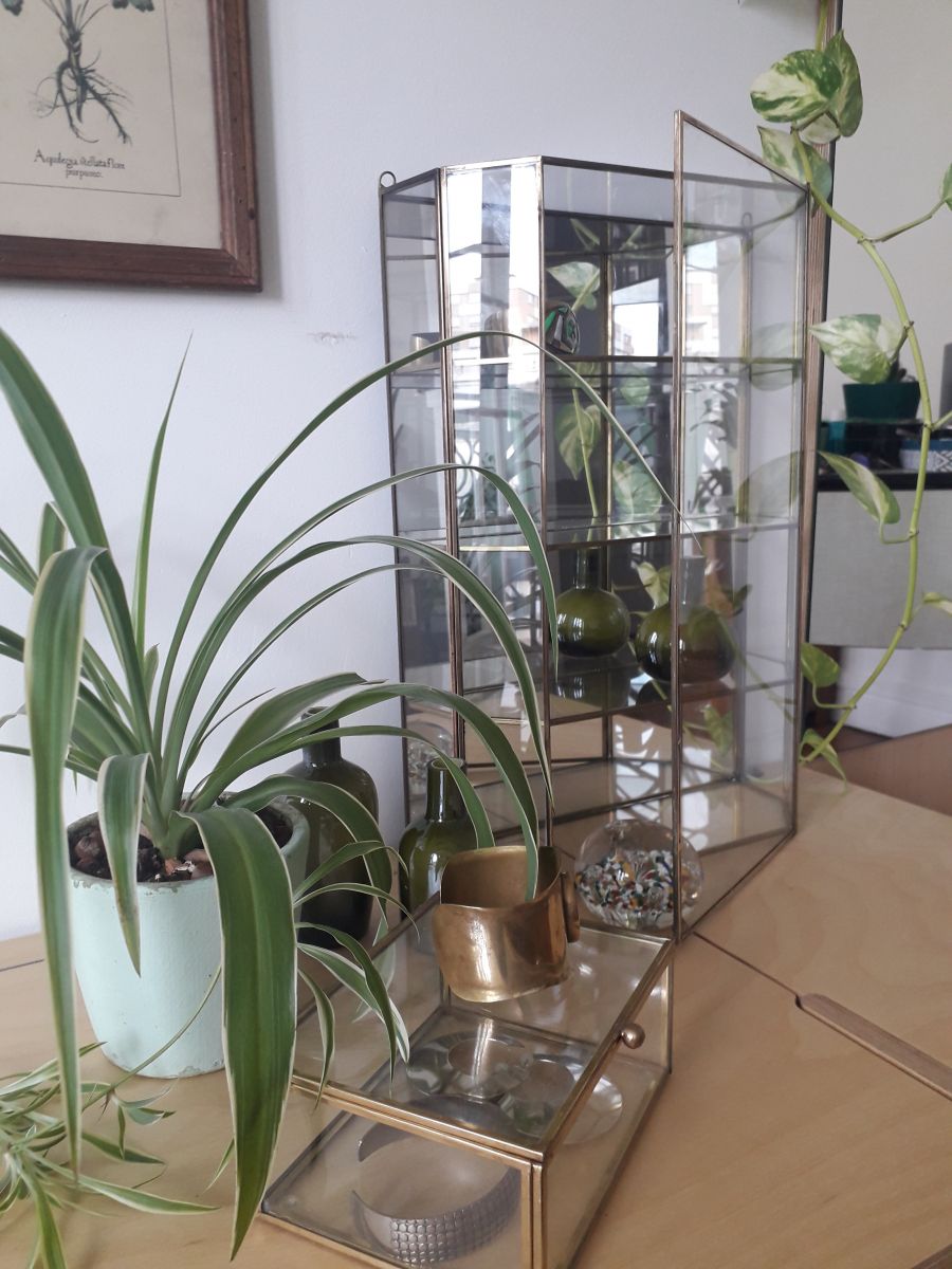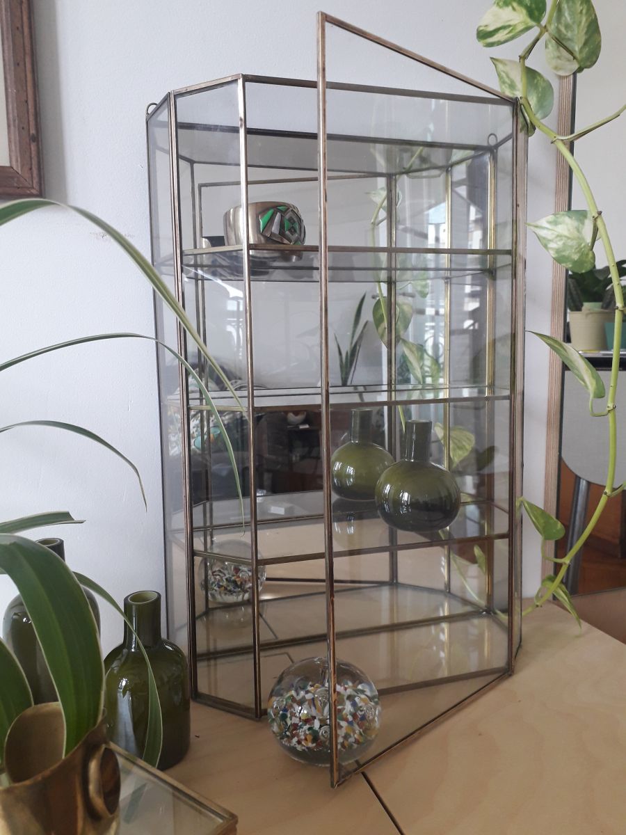Esprit verrière ! Vitrine Vintage miroir et laiton chinée ce week-end ! Avec quelques plantes ou pour ranger ses bijoux...bref, elle est juste trop belle ! Moi je suis tombée tout de suite amoureuse de cet objet déco et utile !