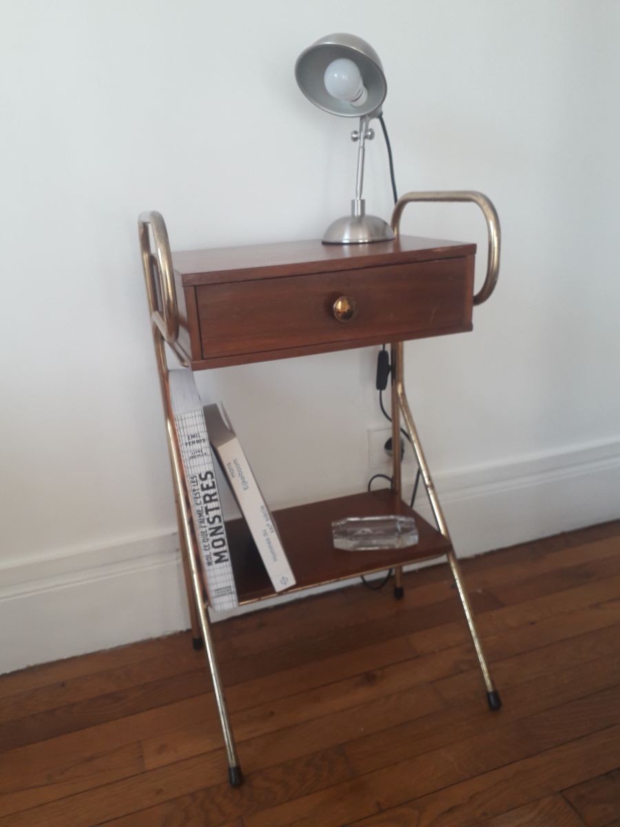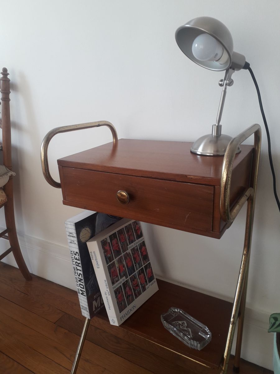 Coup de cœur ce weekend pour ce petit meuble en laiton et plaquage. Son design est tellement typique des années 70 ! Trouvé sur une brocante, il m'a tout de suite attiré l'oeil. En plus, il est en super état !