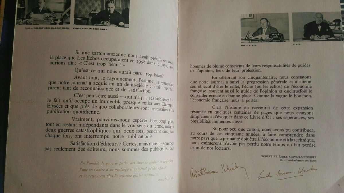 Pour l'expansion continue. Les Directeurs-Fondateurs des Echos vous parlent... Ce 2 mai 1908. La presse il y a 50 ans.